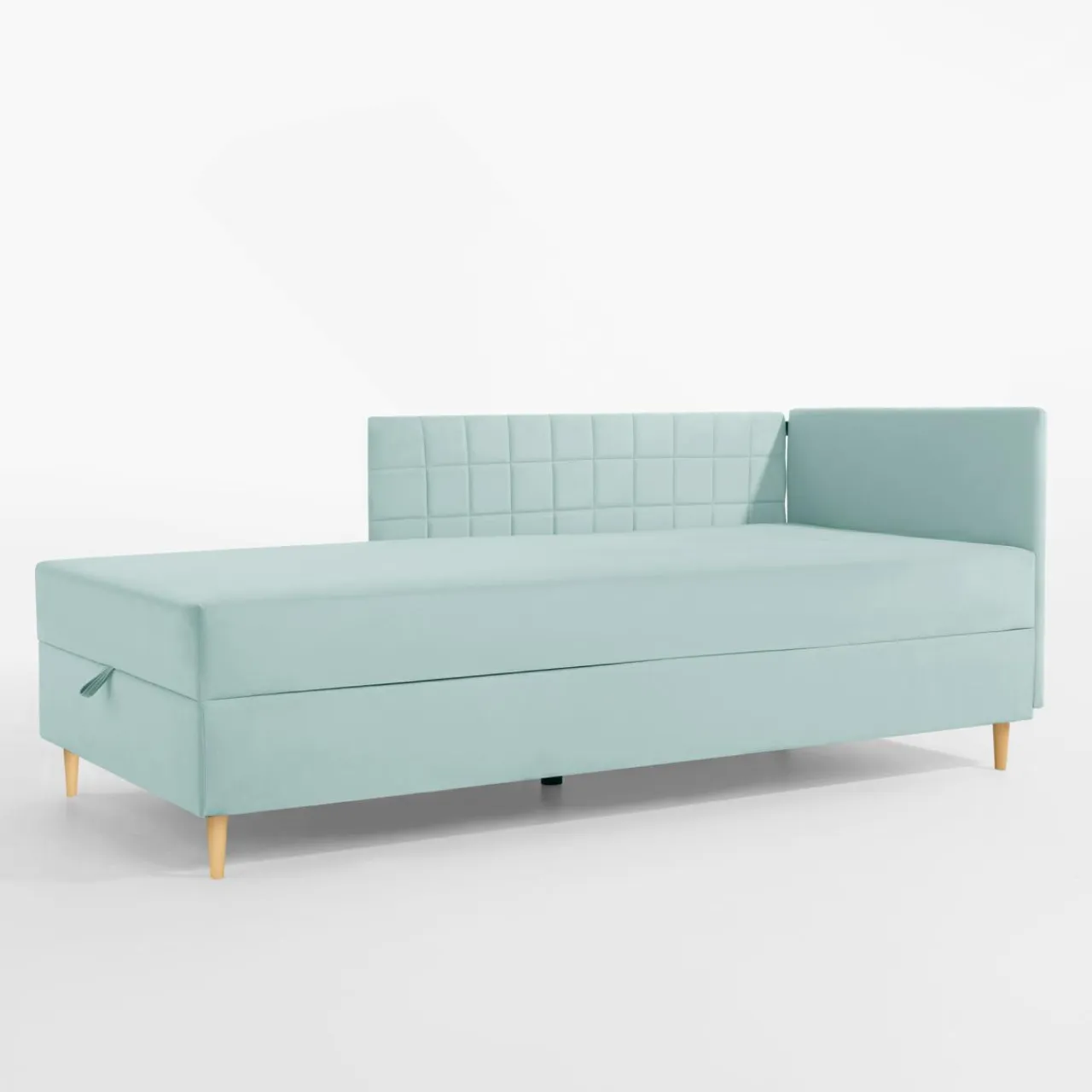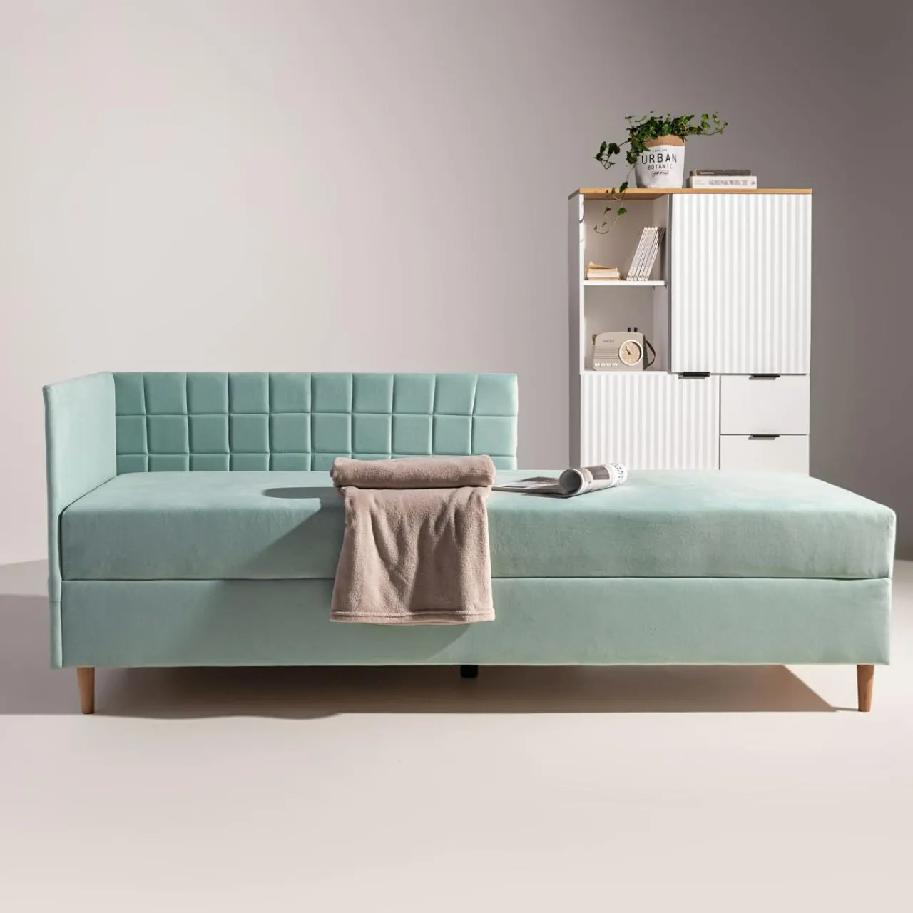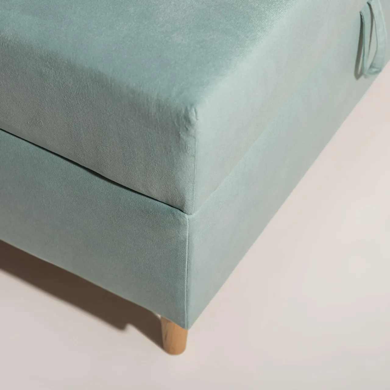 - Miękki welur w miętowym odcieniu wpisze się w wystrój pokoju młodzieżowego.