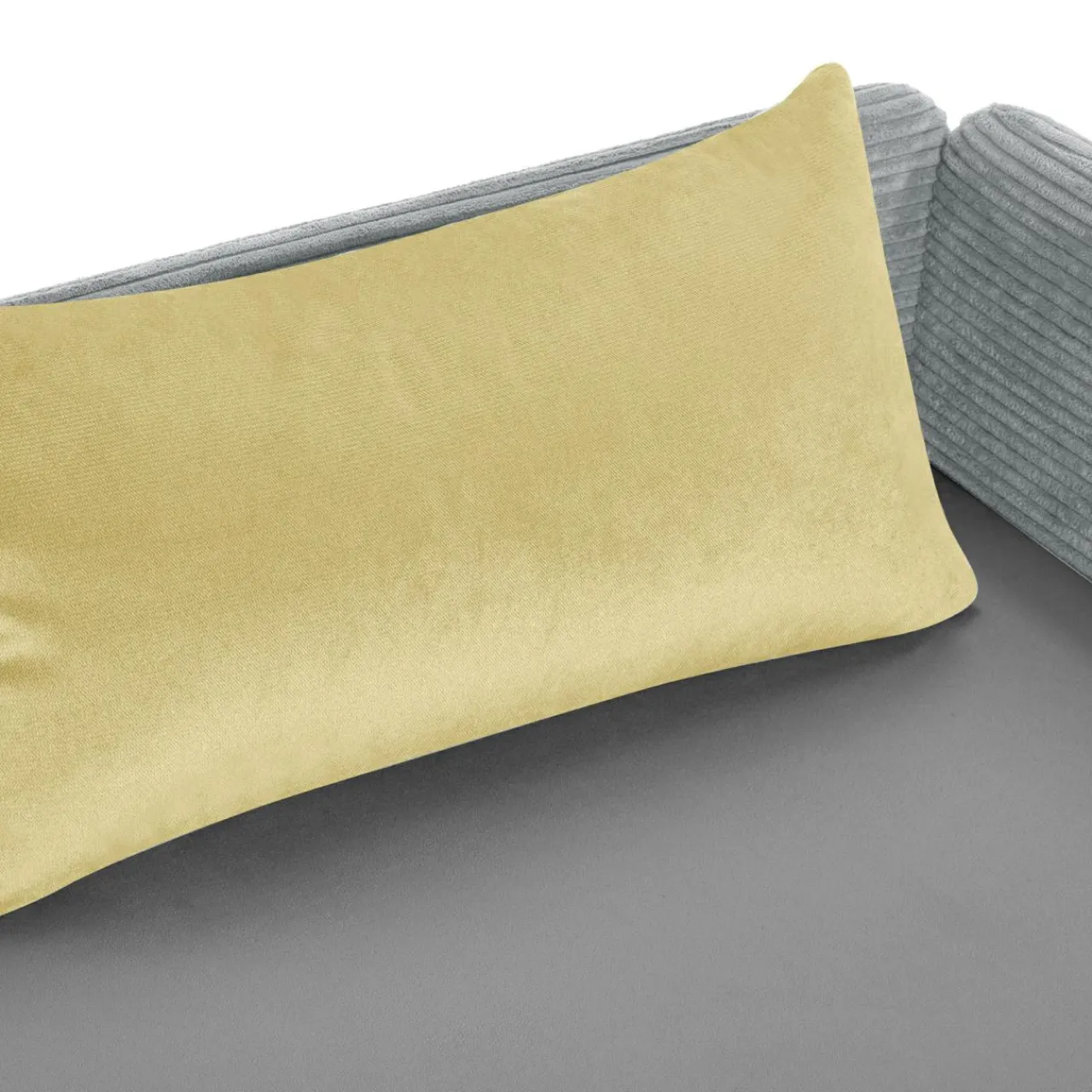 - Do tapczanu dołączona jest pluszowa poduszka w kontrastowym kolorze, która może być dekoracją albo podparciem pod głowę podczas spania.