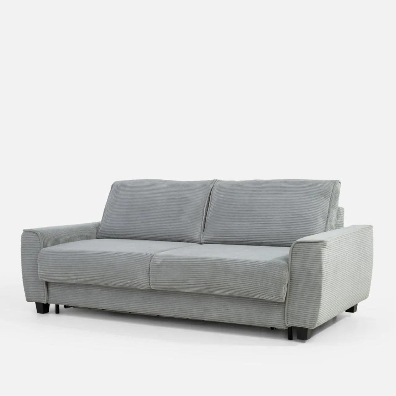 Sofa MONZO 140 łączy w sobie wygodę i praktyczność, oferując funkcję rozkładania do powierzchni spania 140×190 cm. Pokryta miękkim sztruksem w subtelnym, szarym odcieniu, wprowadza do wnętrza ciepło i nowoczesny design. Wyposażona w włoski stelaż, zapewnia komfort użytkowania.