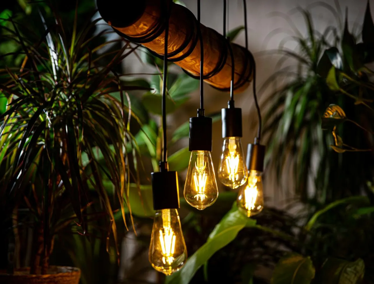 Źródła światła są pozbawione kloszy, dzięki czemu do lampy można z powodzeniem dobrać ozdobne żarówki, które doskonale podkreślą walory pomieszczenia.
