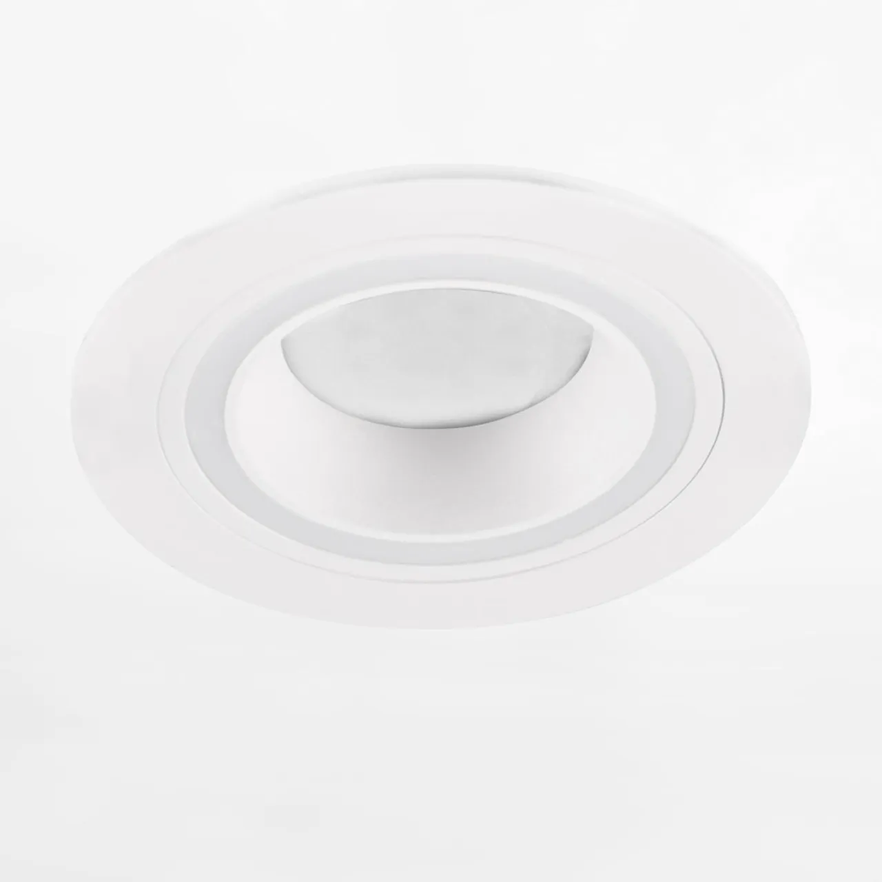 - Kształt – okrągła, w białym wykończeniu, które subtelnie wtapia się w sufit.