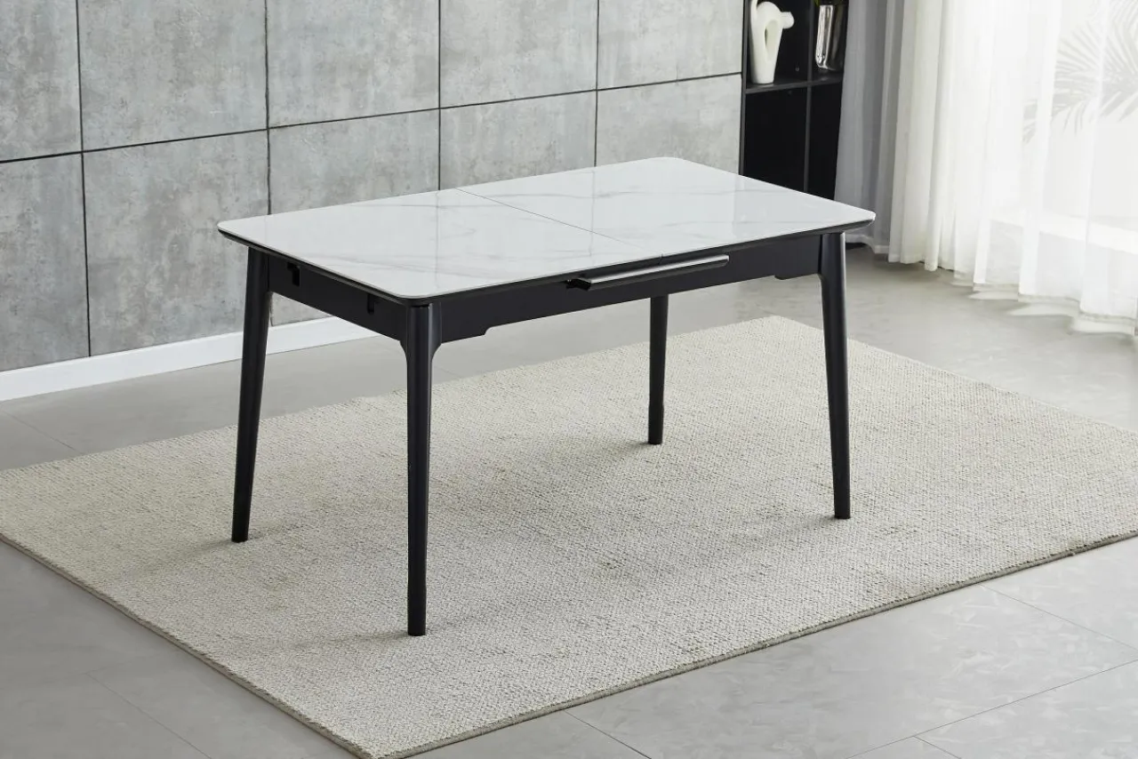 Stół OPANO wyróżnia się ceramicznym blatem wykończonym w wysokim połysku.