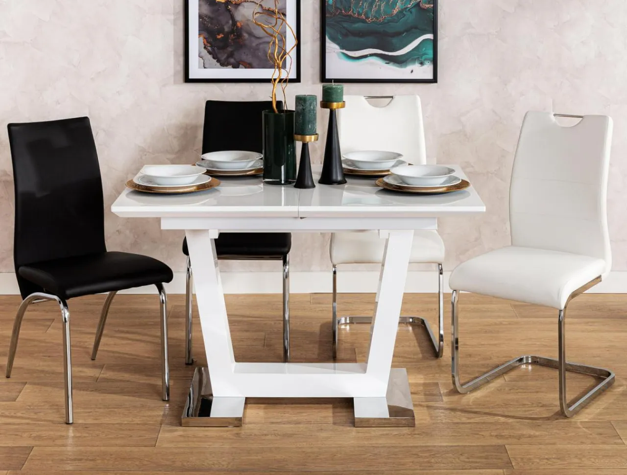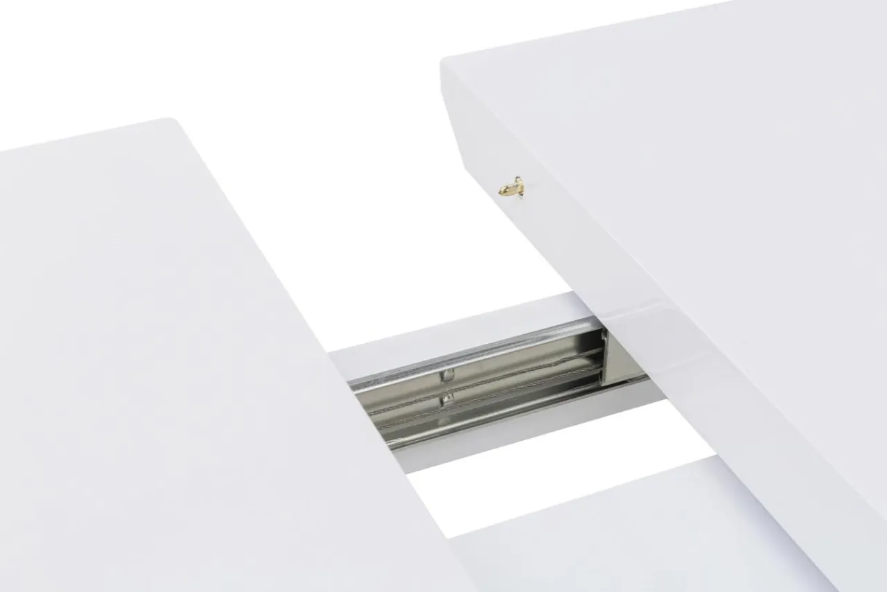 Dzięki metalowym prowadnicom stół ETTO rozkłada się i składa w bardzo prosty sposób. Wkładka o długości 40 cm znajduje się pod blatem głównym. Pełne rozłożenie stołu zwiększa jego długość do 160 cm.