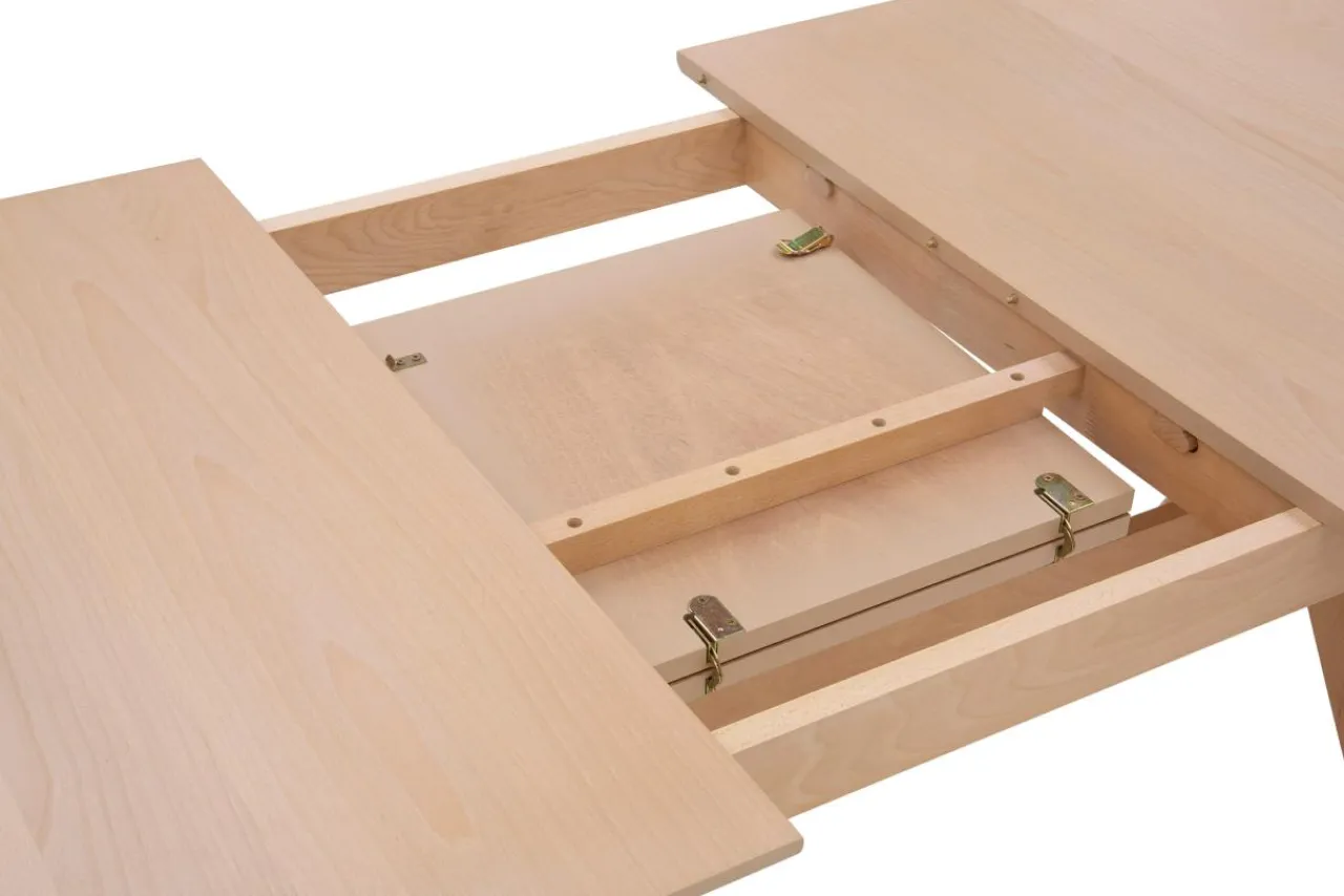 - Stół posiada drewniane prowadnice, które są dopasowane do stołu. Cicha praca mechanizmu pozwala złożyć stół nawet późnym wieczorem.