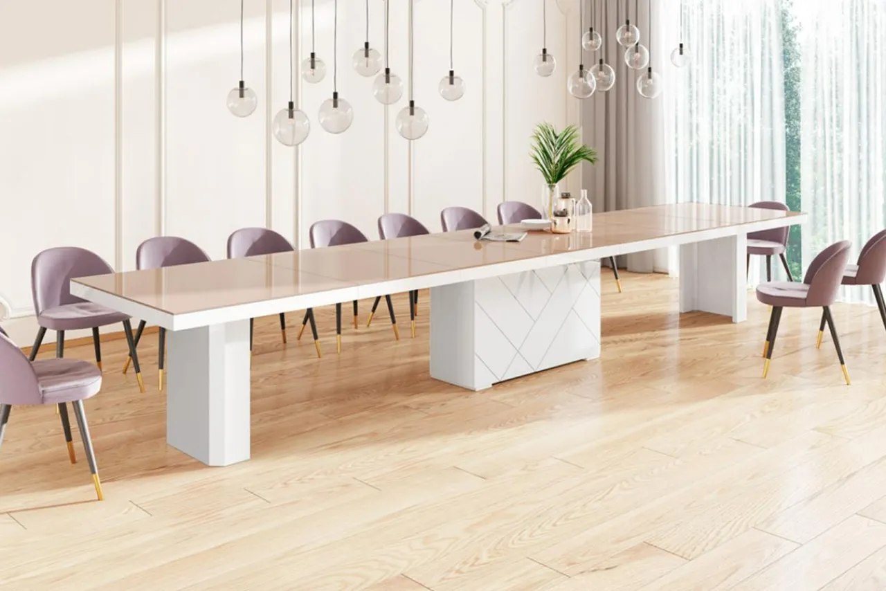 KOLOS MAX imponuje dużym zakresem rozkładania się oraz minimalistyczną elegancją. Z blatu o długości 180 cm można stworzyć nawet ponad 4,6 metrowy stół – idealny na uroczyste rodzinne biesiady i narady firmowe na wysokim szczeblu.