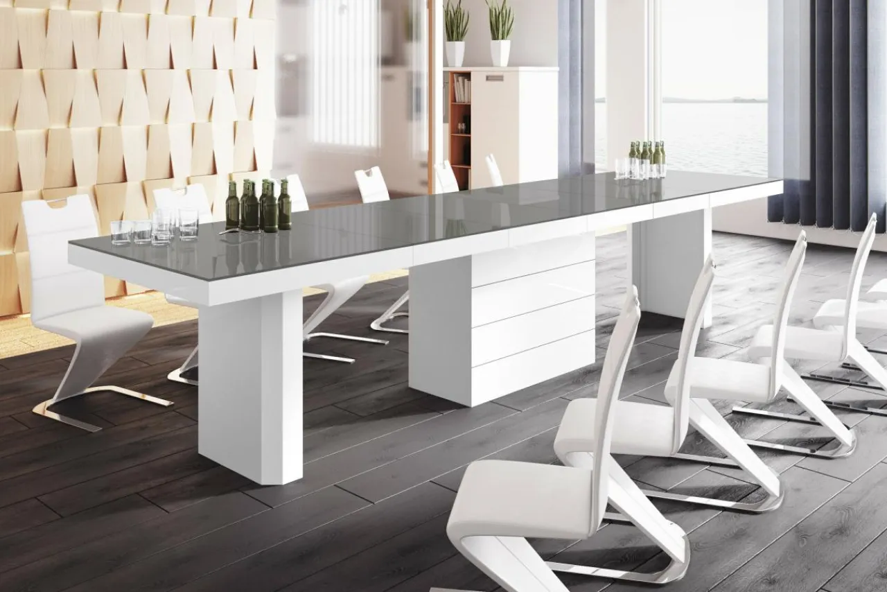 Z blatu o długości 160 cm można stworzyć nawet ponad 4 metrowy stół – idealny na uroczyste rodzinne biesiady i narady firmowe na wysokim szczeblu.