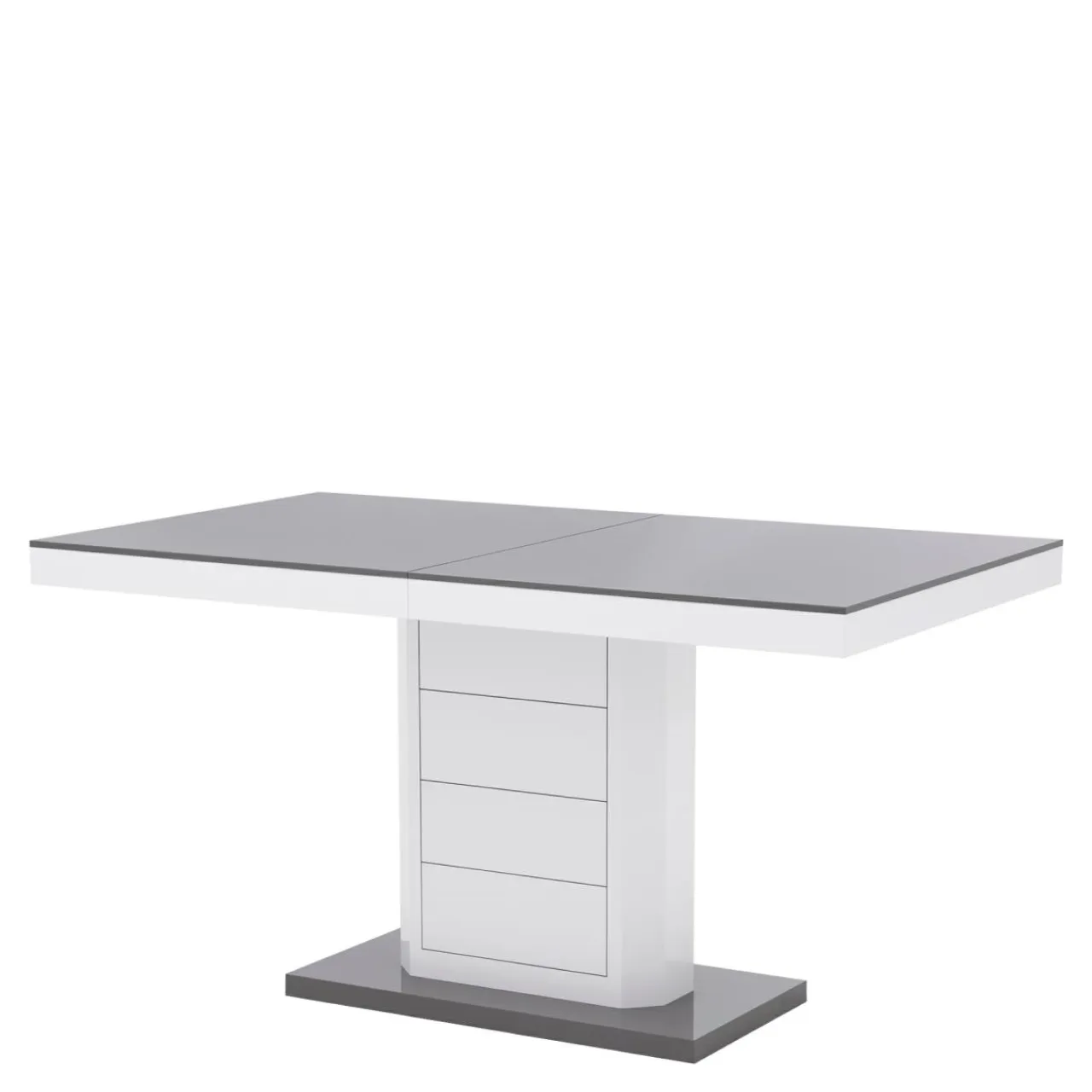 Stół z szarym blatem i podstawą wyróżnia się nowoczesnym designem i doskonale sprawdzi się w jasnych, współczesnych aranżacjach.