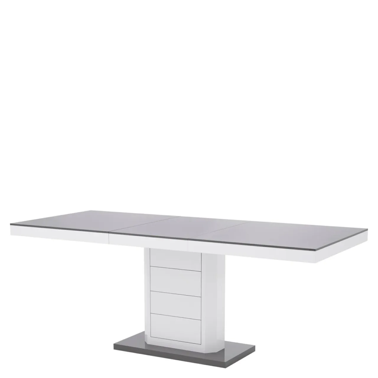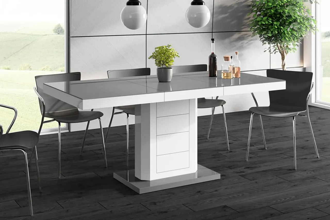 Kolumnowa podstawa stołu LIMENA iwykończenie na wysoki połysk sprawiają, że mebel prezentuje się niezwykle elegancko w nowoczesnych jadalniach.