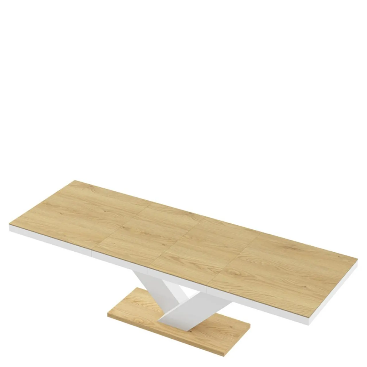 - Stół rozkłada się niezwykle lekko za pomocą prowadnicy synchronicznej – wystarczy rozsunąć jedną część blatu, druga zacznie rozkładać się równolegle.
