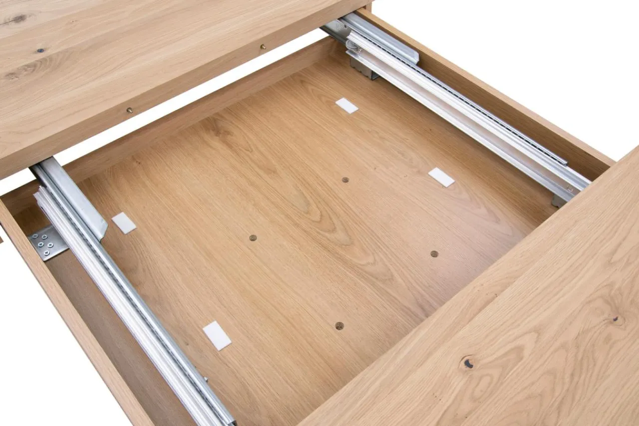 - Możesz dostosować długość blatu do ilości gości, dzięki 2 wkładkom o wymiarach 50 x 100 cm.