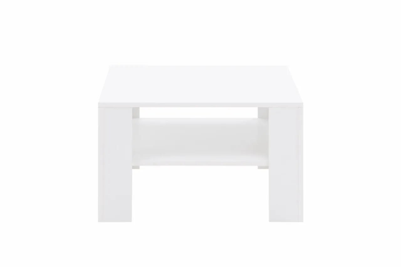 Stolik GALA wykonano z płyty meblowej i wykończono białym laminatem. Wpasuje się w salon, niezależnie od dominującego we wnętrzu koloru.