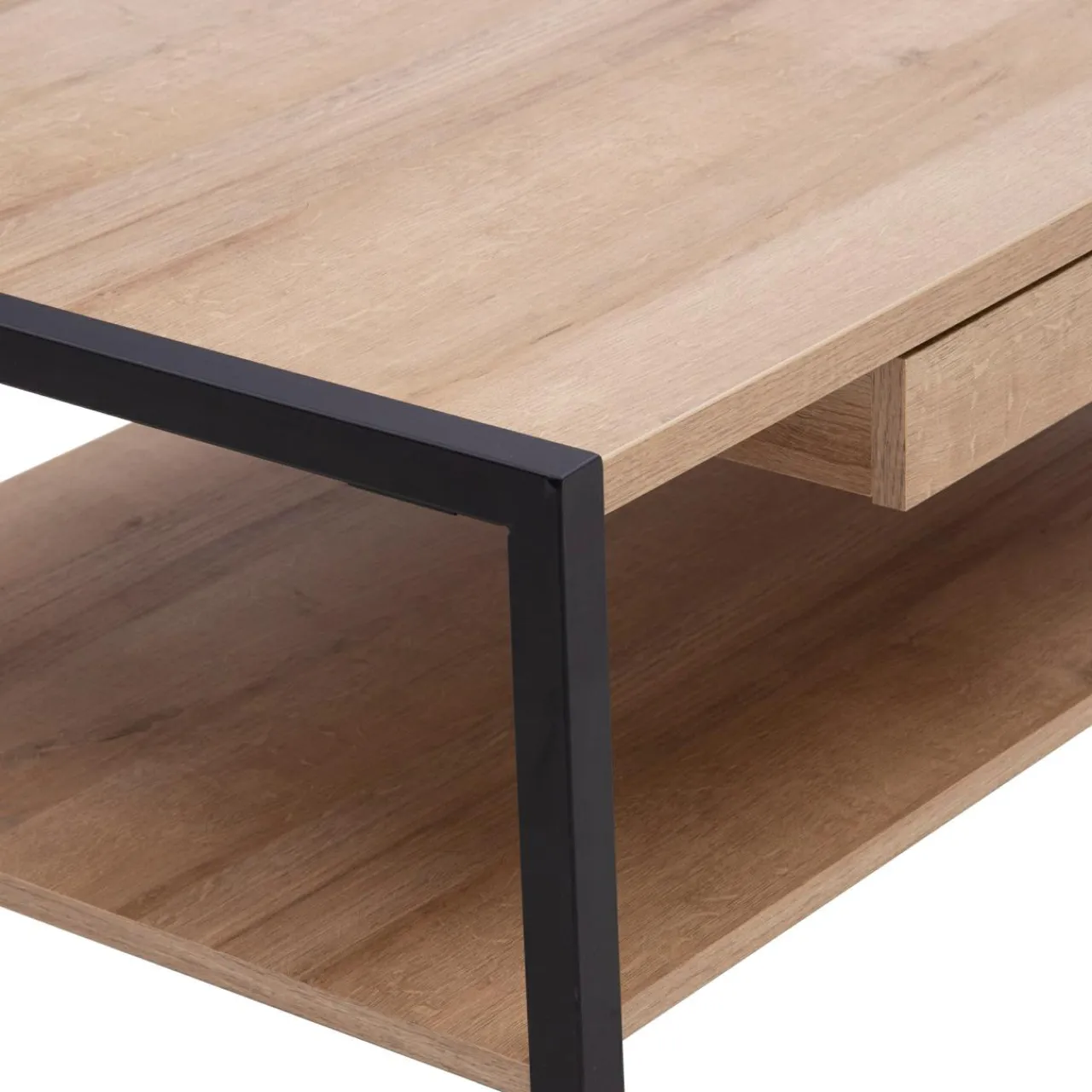 - Uwagę Twoich gości przyciągnie kolor stolika, który imituje naturalny kolor dębu oraz metalowe profile, które pełnią rolę nóg stolika.