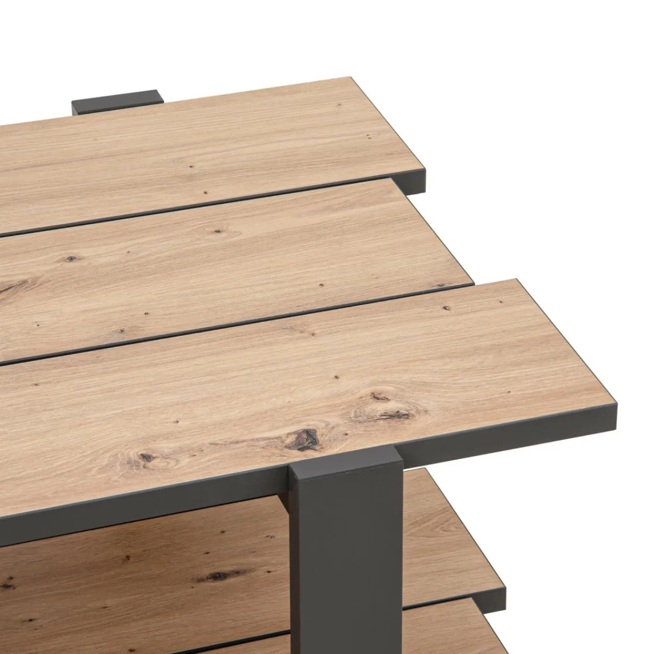 Blat stolika COFFEE TABLES przypomina zbite surowe deski. Dzięki temu prezentuje się oryginalnie i pasuje do wnętrz o loftowym charakterze.