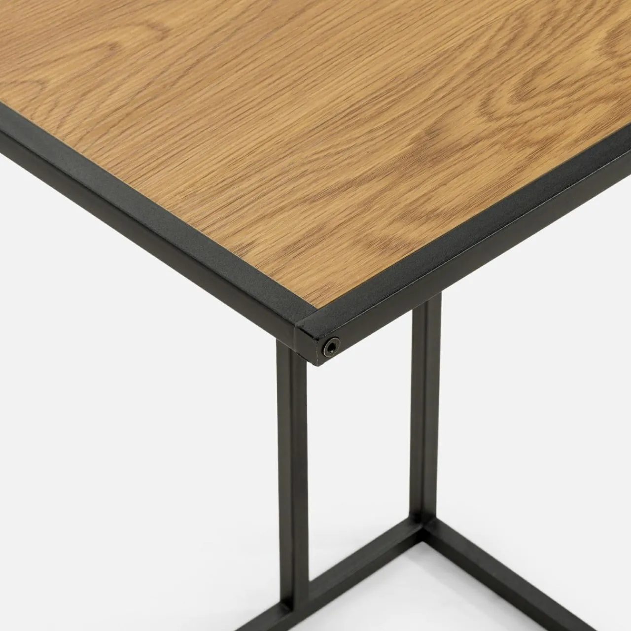 - Wybarwienie stolika w przyjemnym, jasnym kolorze dębu dzikiego pięknie koresponduje z matowym wykończeniem czarnej ramy.