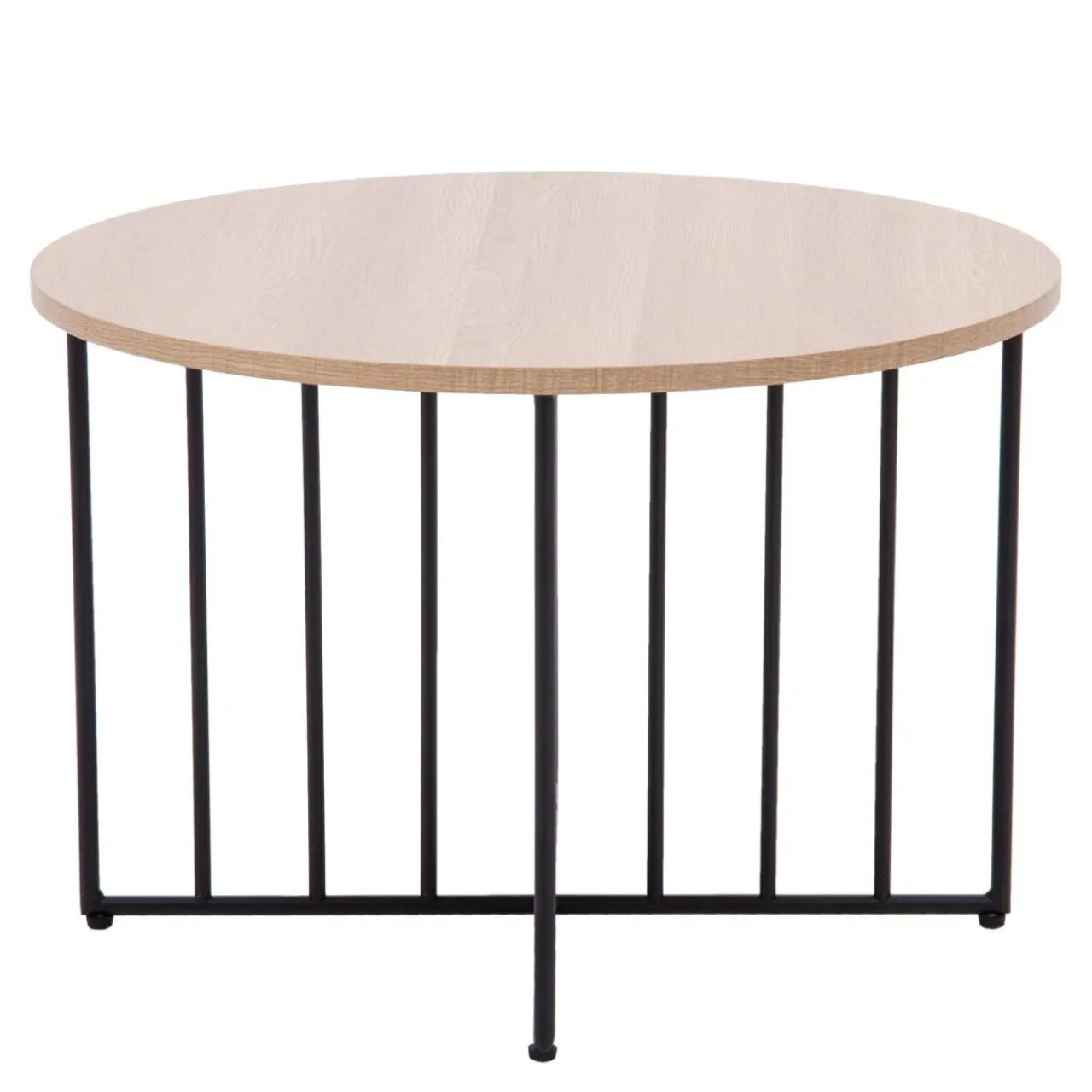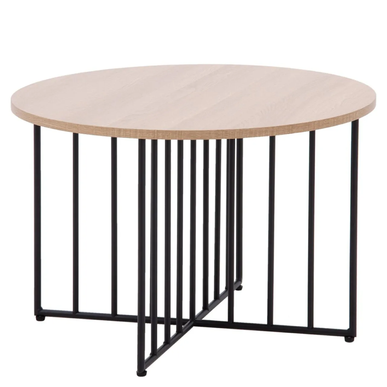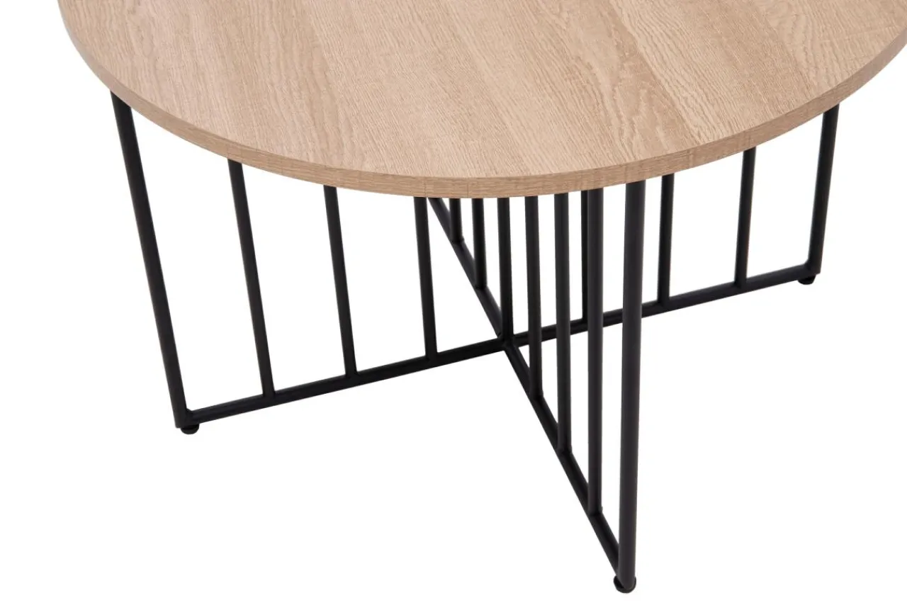 Podstawa z poprzecznie rozmieszczonymi metalowymi elementami to stabilny punkt podparcia dla okrągłego blatu.
