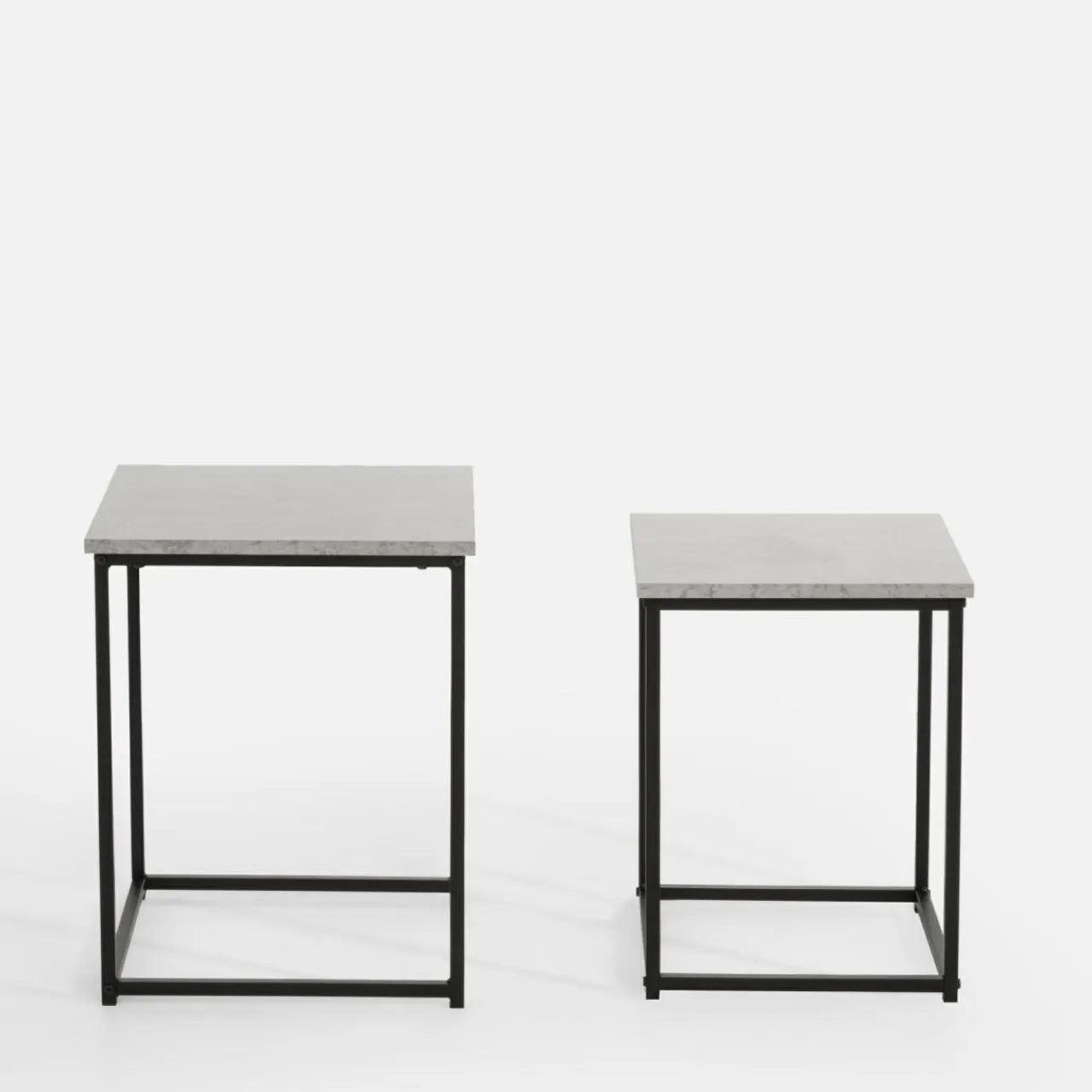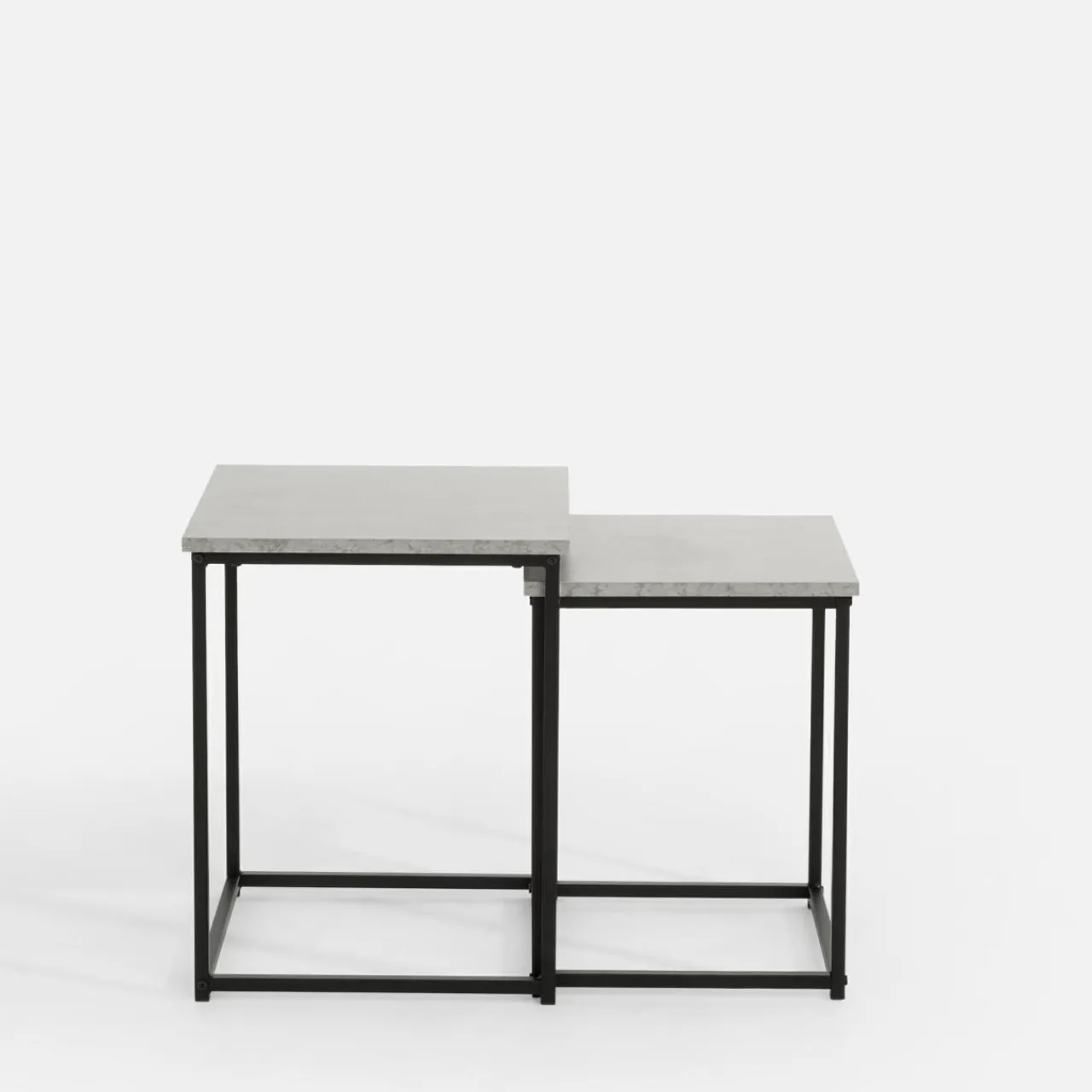 - mniejszy ze stolików ma wysokość 45 cm, a wymiar jego blatu to 35×35 cm