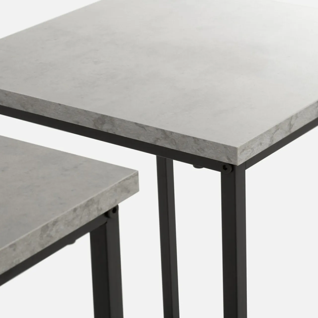 - czarny metal w połączeniu z blatem pokrytym okleiną imitującą cement sprawiają , że stoliki świetnie wkomponują się w loftowe wnętrza