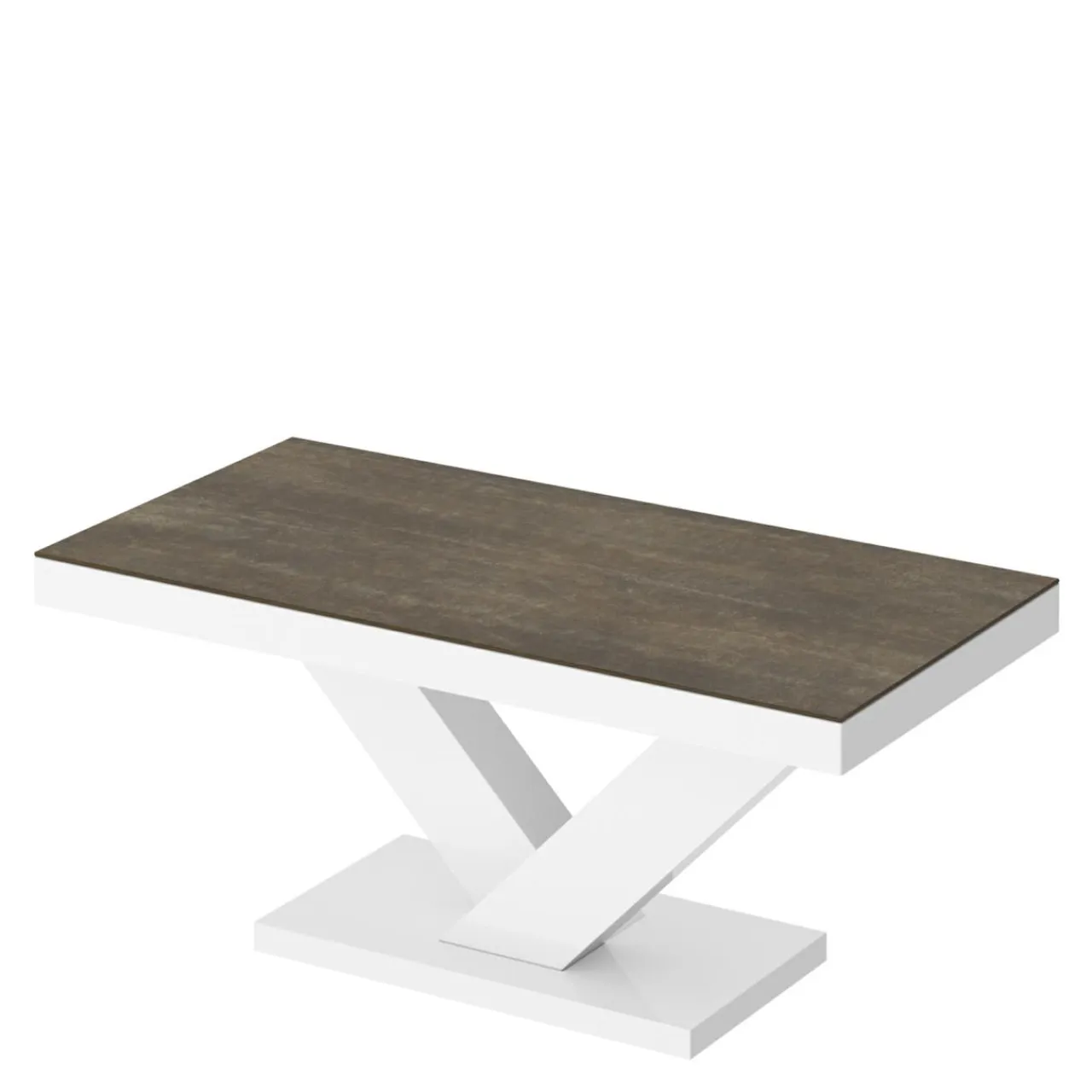 Ława ma białą podstawę i blat w kolorze imitującym rdzę. Świetnie sprawdzi się w loftowych aranżacjach.