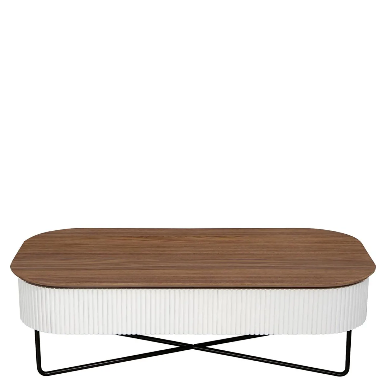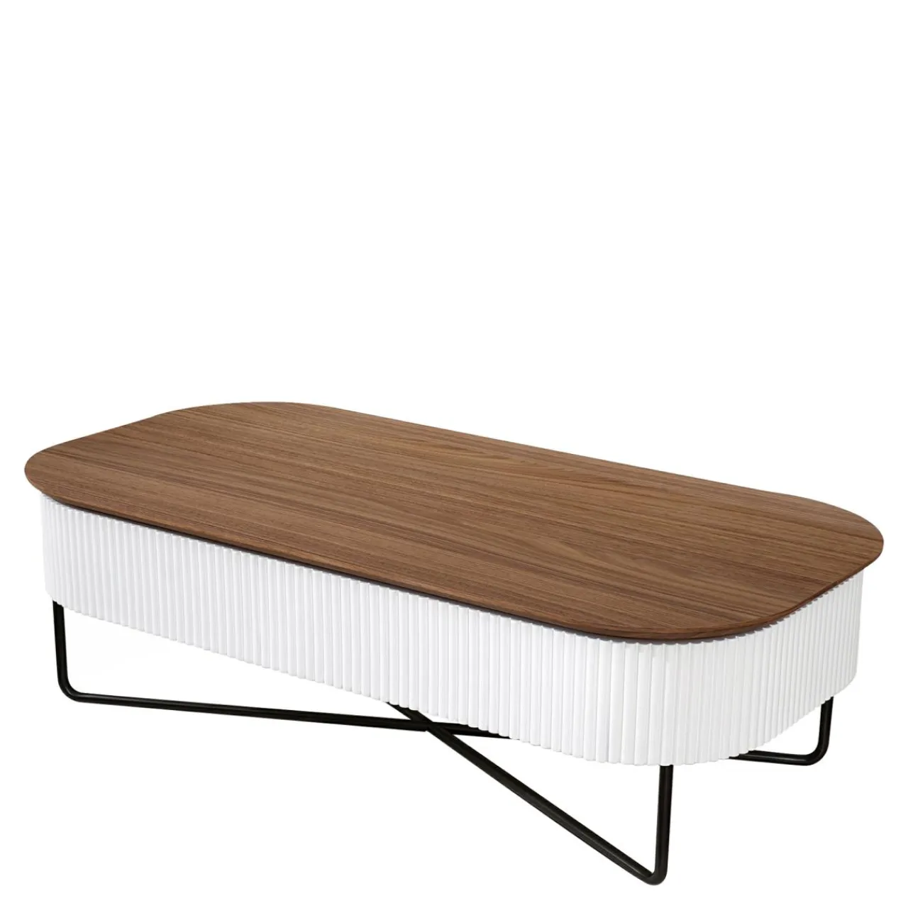 - Stolik ma nowoczesny design, dzięki metalowym czarnym nóżkom i białej skrzyni – neutralne kolory łatwo wkomponujesz w różne style wnętrza.