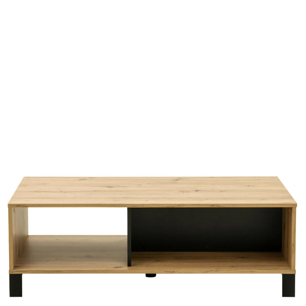 Metalowe, czarne wstawki w połączeniu z wybarwieniem w kolorze dąb artisan – tym wyróżnia się stolik SOFIA.