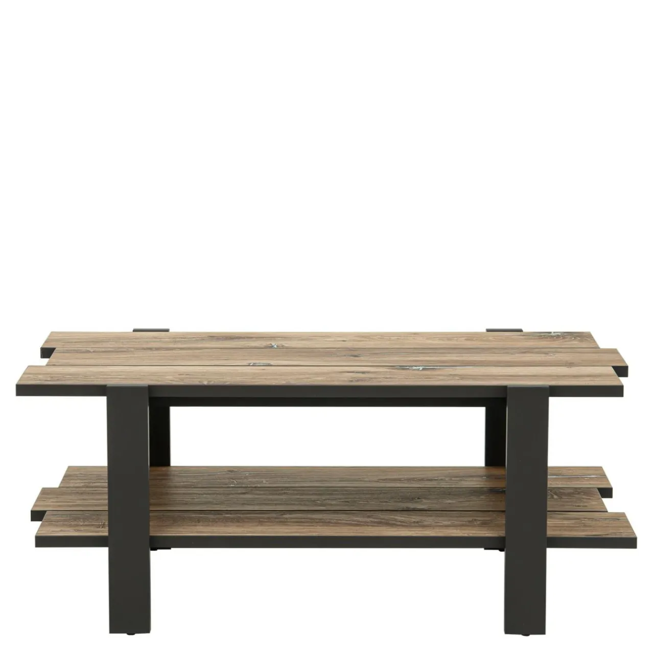 Blat stolika COFFEE TABLES przypomina zbite surowe deski. Dzięki temu prezentuje się oryginalnie i pasuje do wnętrz o loftowym charakterze.