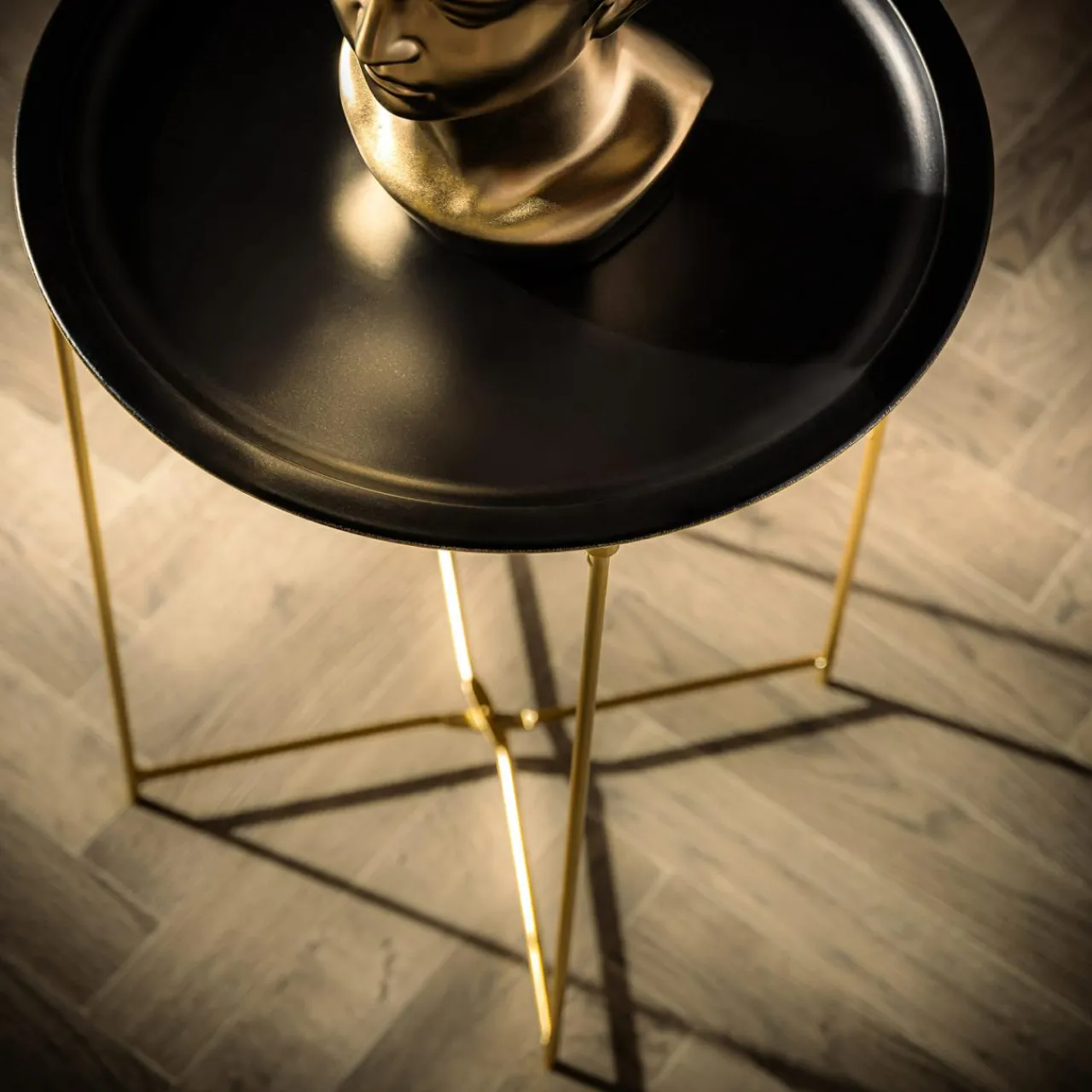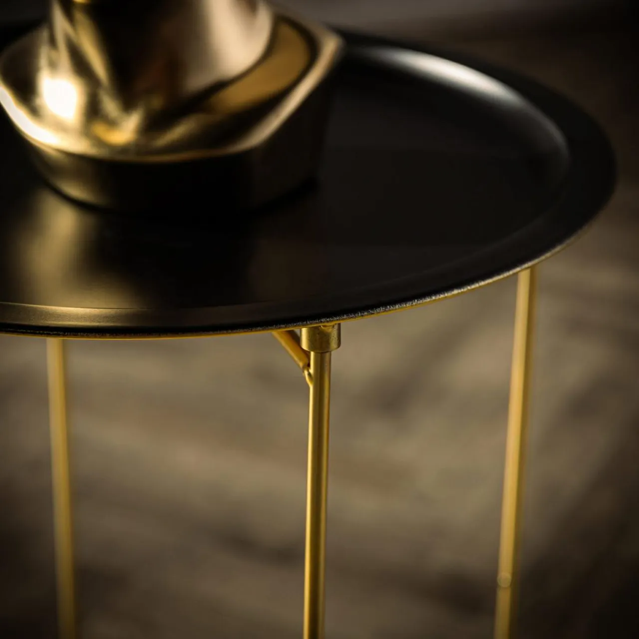 Stoliki Kawowe| Stolik z tacą czarno-złoty 48 cm