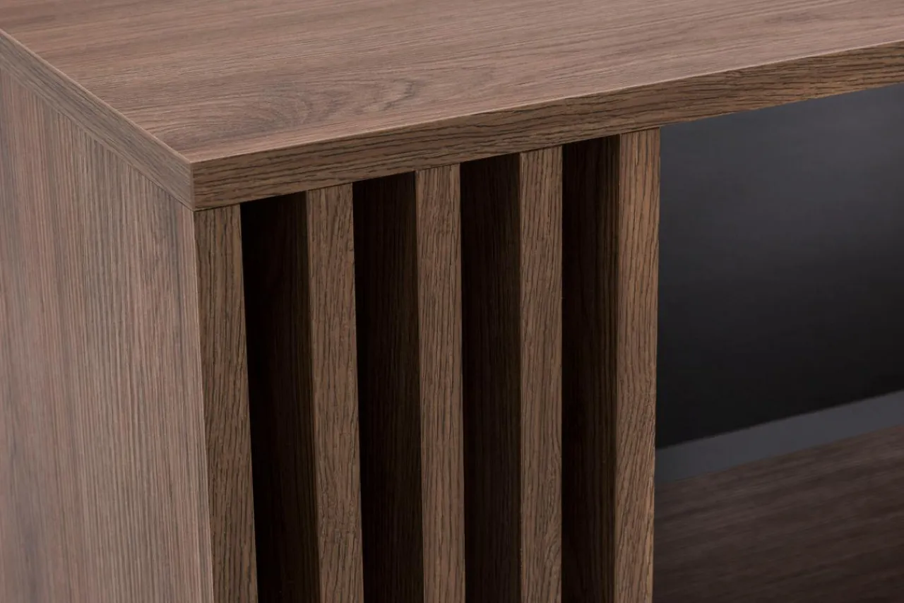 Stolik kawowy BOSTON wchodzi w skład kolekcji, której wyznacznikiem jest zastosowanie efektu lameli na frontach mebli.