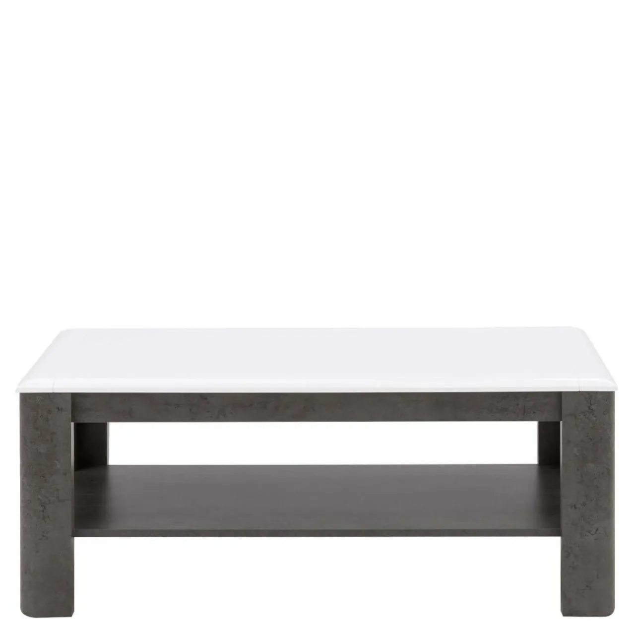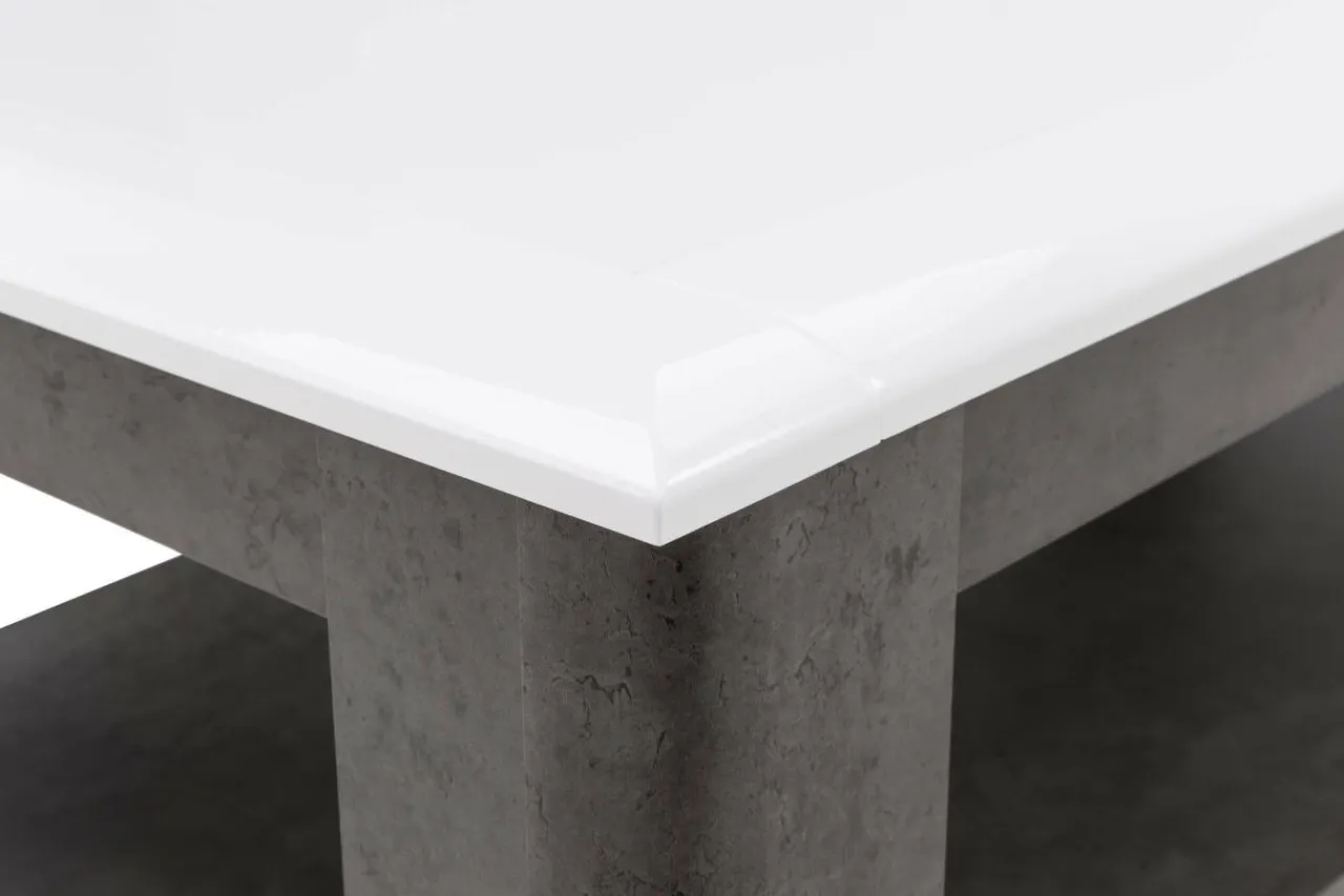 Stolik wykonano z płyt meblowych pokrytych laminatem i folią, z elementami z płyty MDF pokrytymi folią. Blat stolika wykończono na wysoki połysk. Stolik ustawiono na nogach z płyt MDF grubych na 38 mm dzięki czemu jest stabilny i trwały.