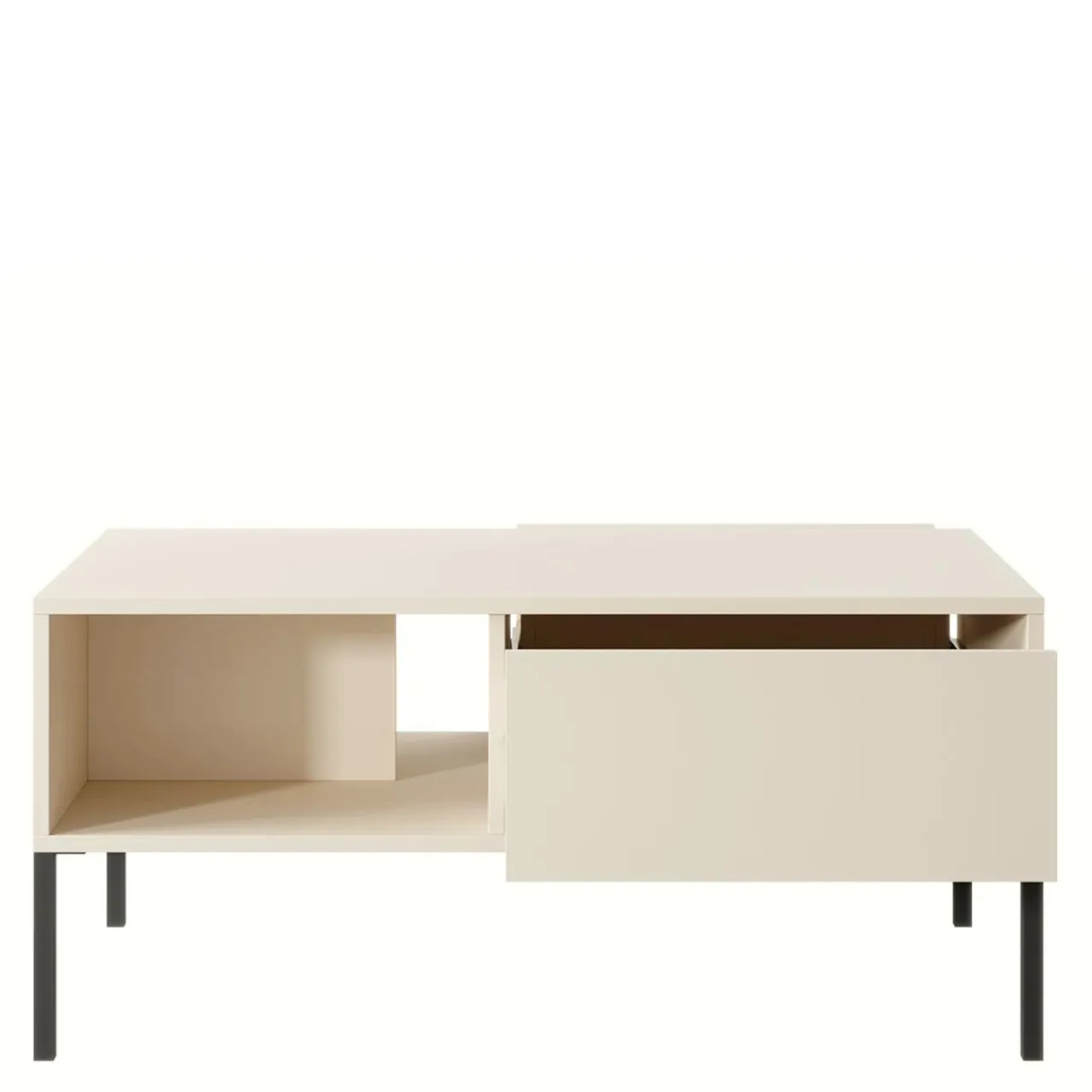 - Stolik wykonano z płyty meblowej i pokryto laminatem, który zapewnia łatwe czyszczenie.