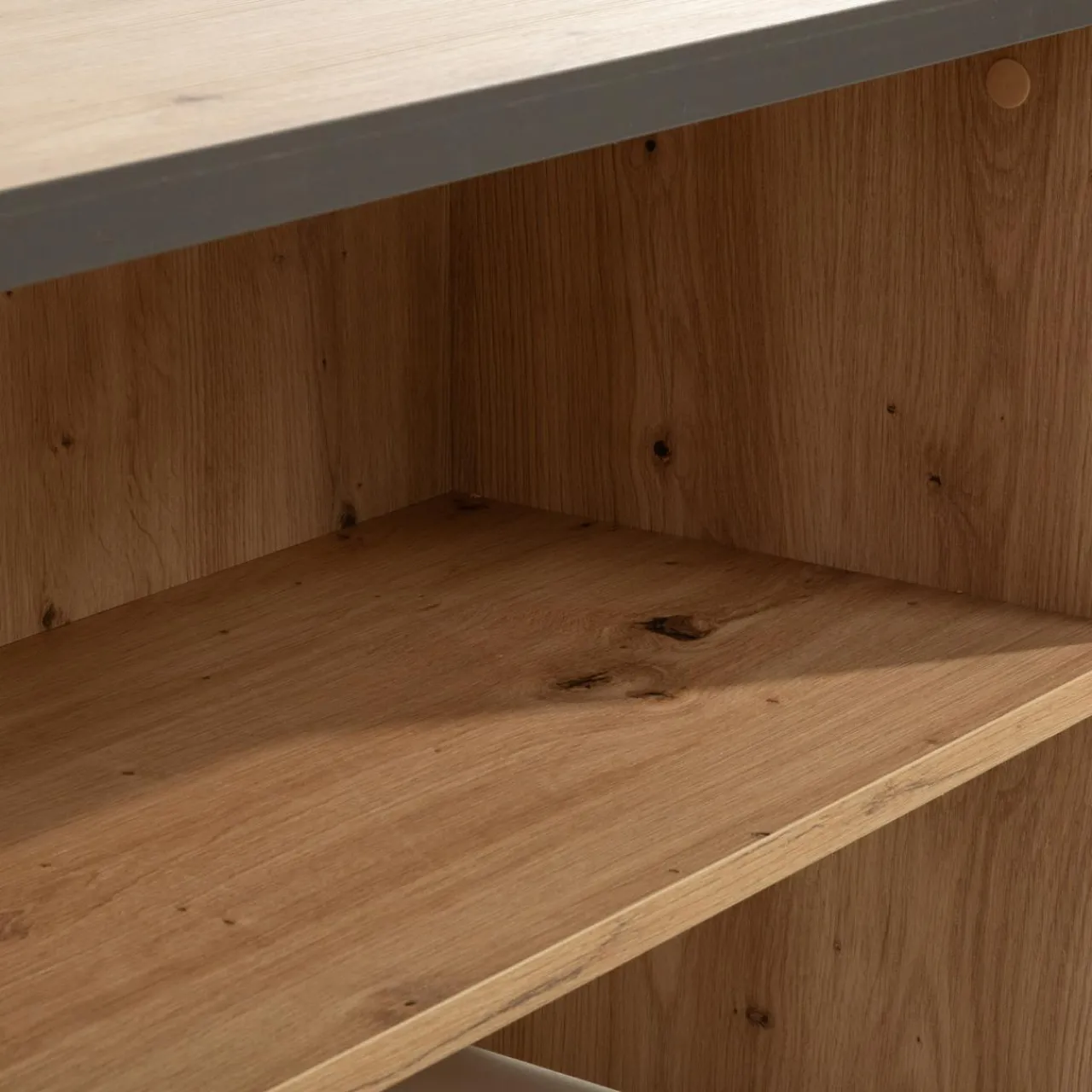 - Korpus mebla jest wykonany z płyty meblowej i wykończony laminatem.