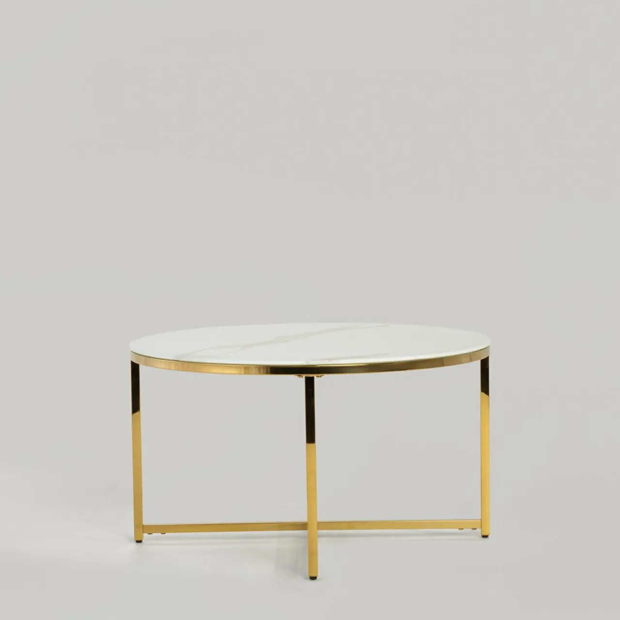 - Podstawa wykonana ze złotej stali polerowanej podkreśli elegancki charakter pokoju dziennego.