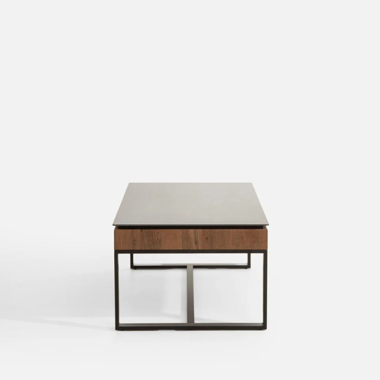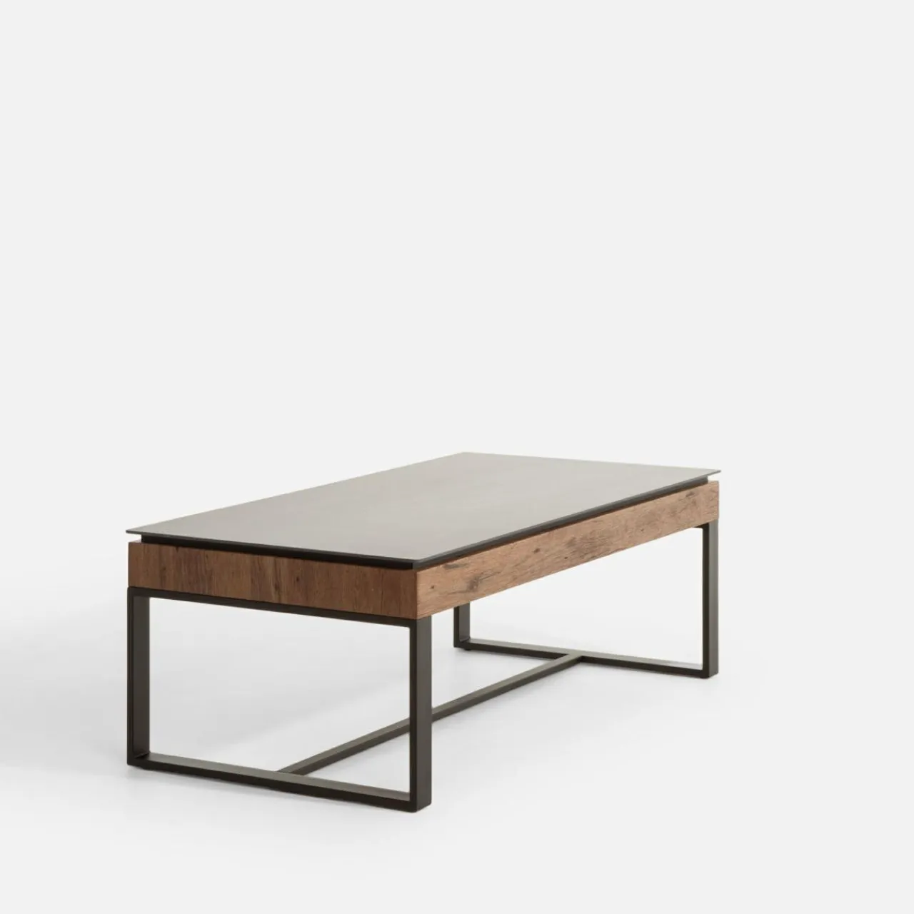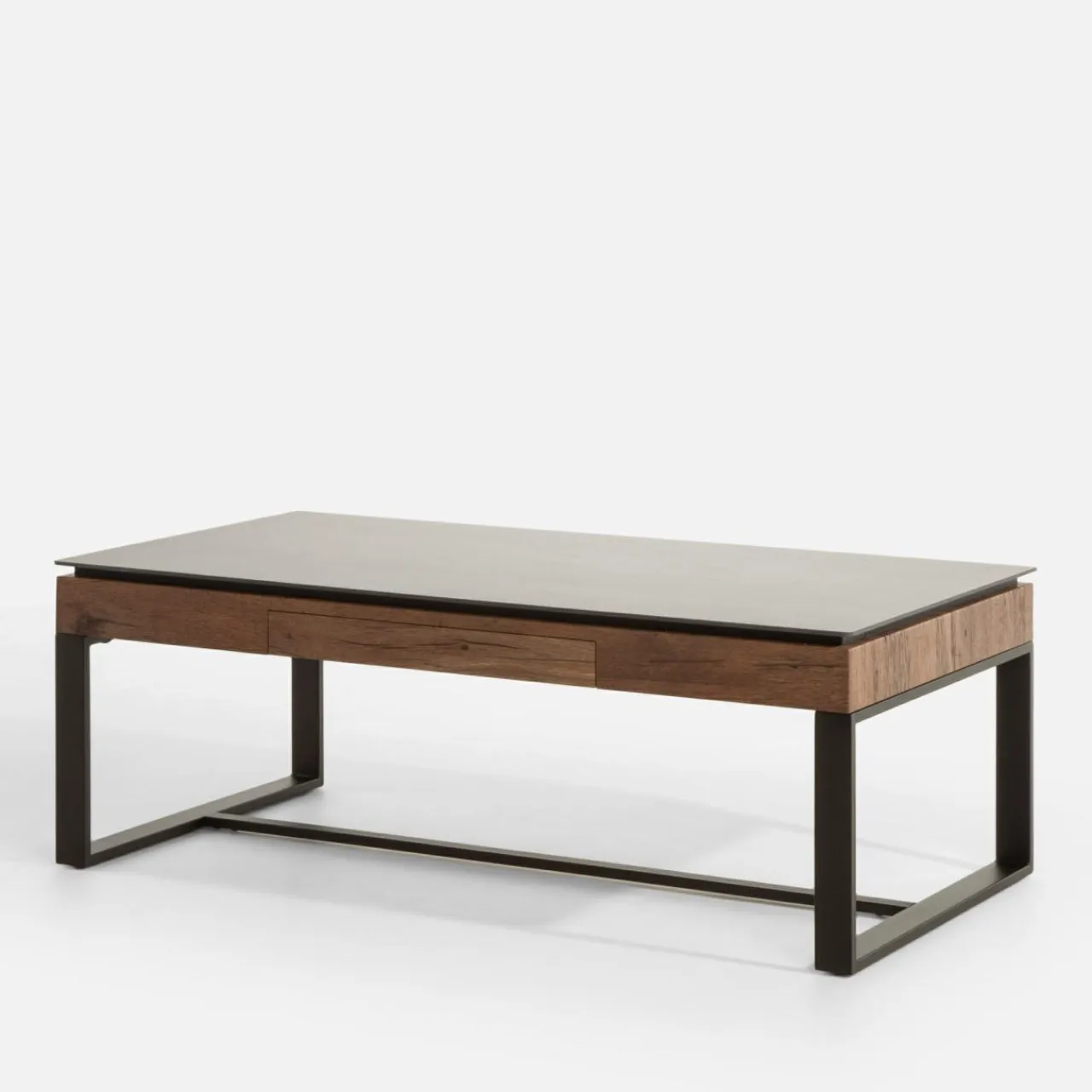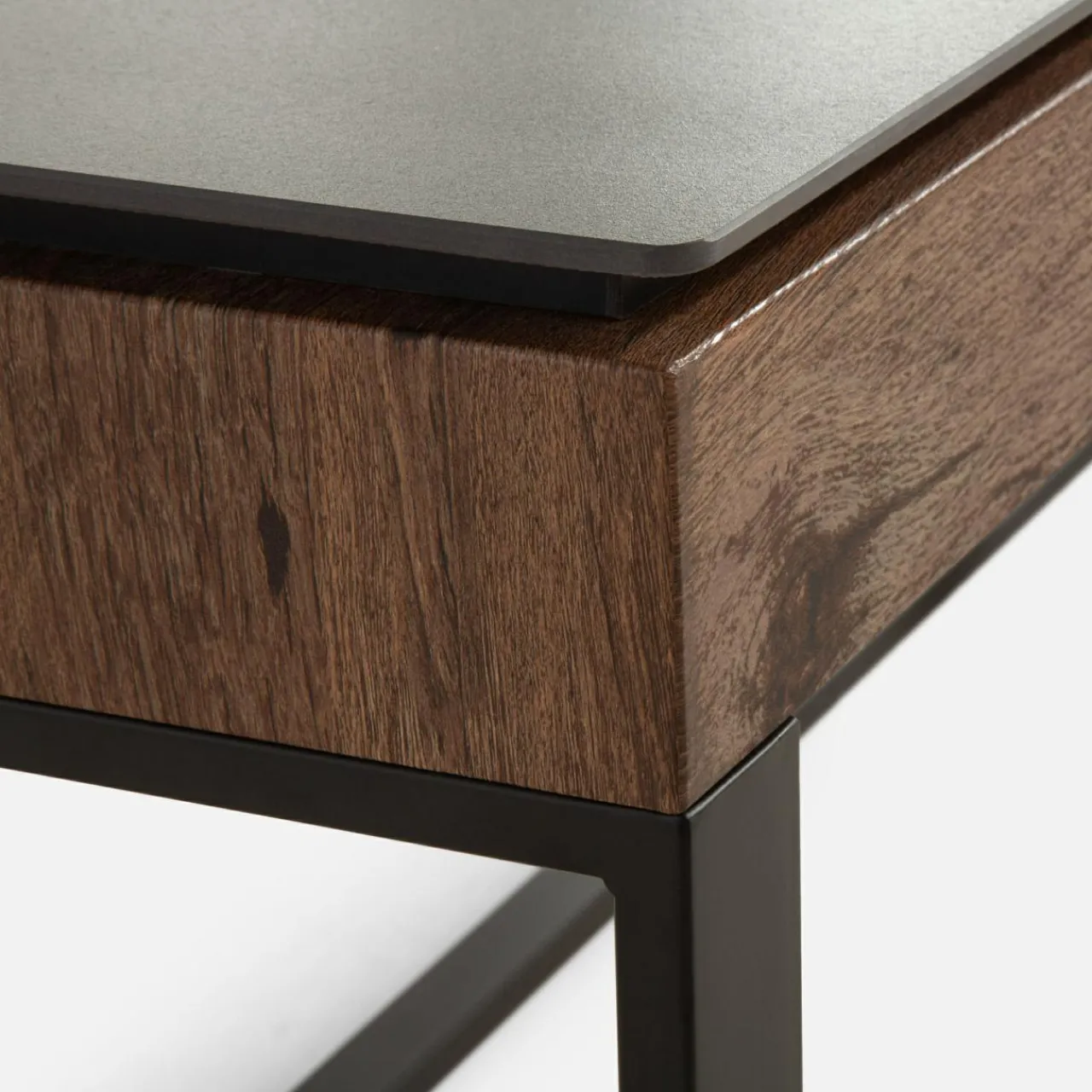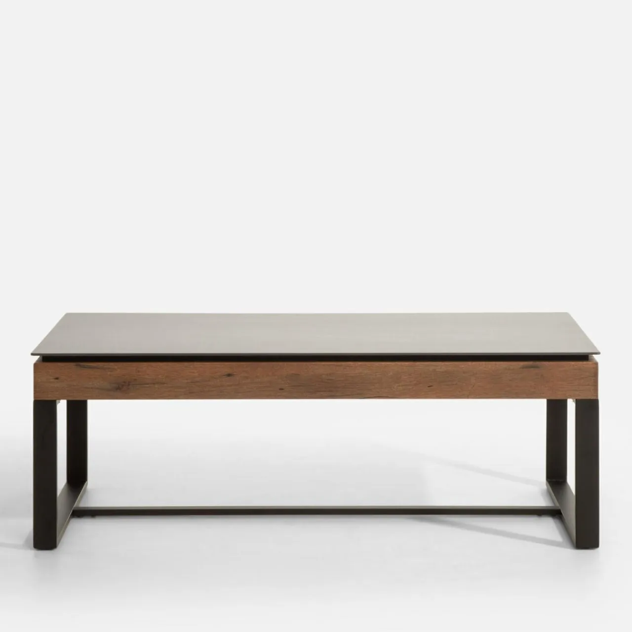 Ława BERMENO wzbogaci nowoczesne i industrialne wnętrza. Połączenie czerni z wiśniowym wybarwieniem imitacji drewna nadaje jej elegancji.