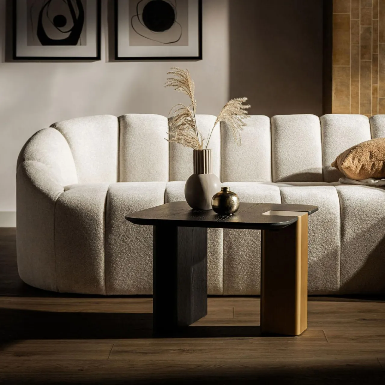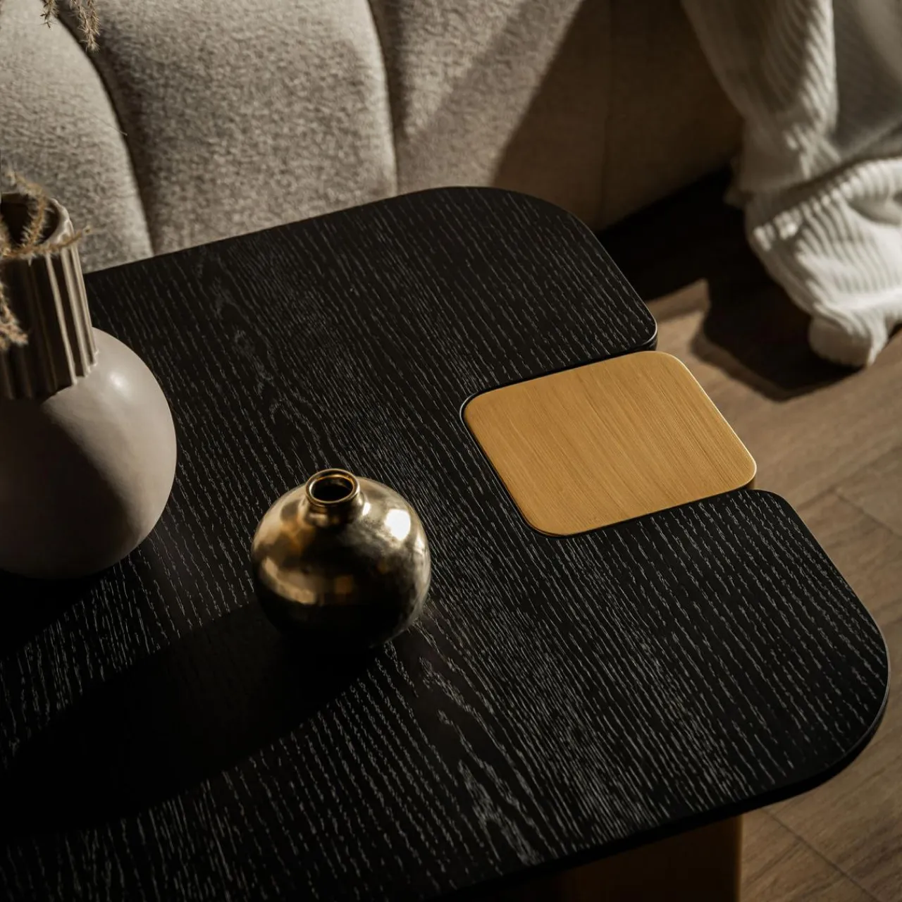 Uzupełnij stolik o niższą ławę z tej samej kolekcji, aby zyskać jeszcze więcej miejsca dekoracje, przekąski czy poczęstunek i kawę.