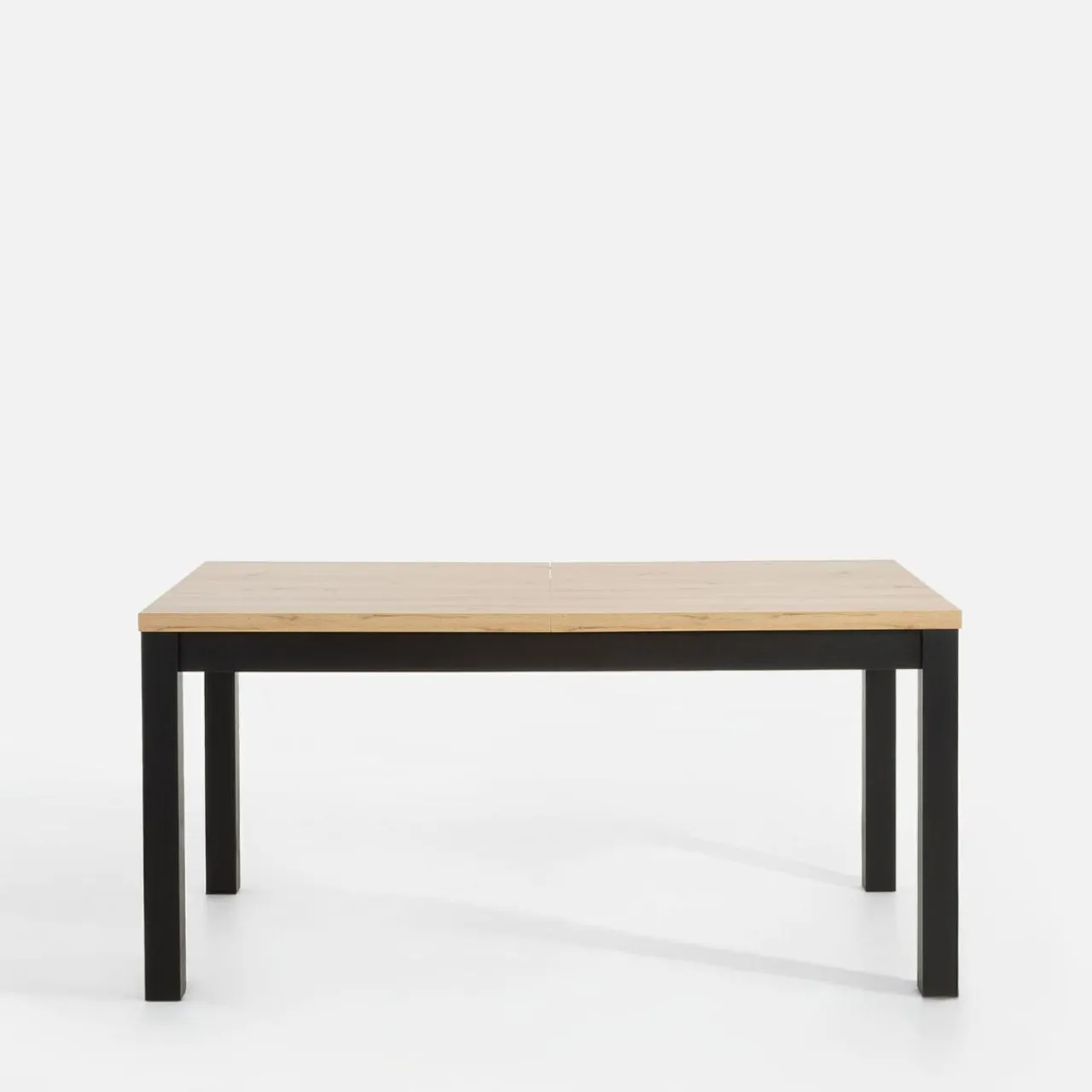 Stół KELAS odnajdzie się w industrialnych jadalniach. Jasne drewno z wyraźną fakturą zostało połączone z czarnymi matowymi nogami, akcentując surowy charakter mebla.