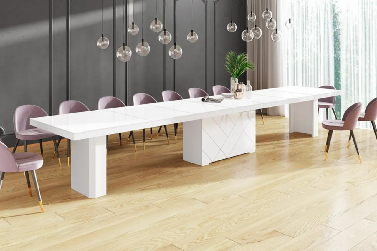 KOLOS MAX imponuje dużym zakresem rozkładania się oraz minimalistyczną elegancją. Z blatu o długości 180 cm można stworzyć nawet ponad 4,6 metrowy stół – idealny na uroczyste rodzinne biesiady i narady firmowe na wysokim szczeblu.