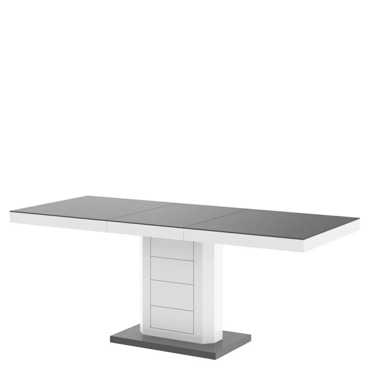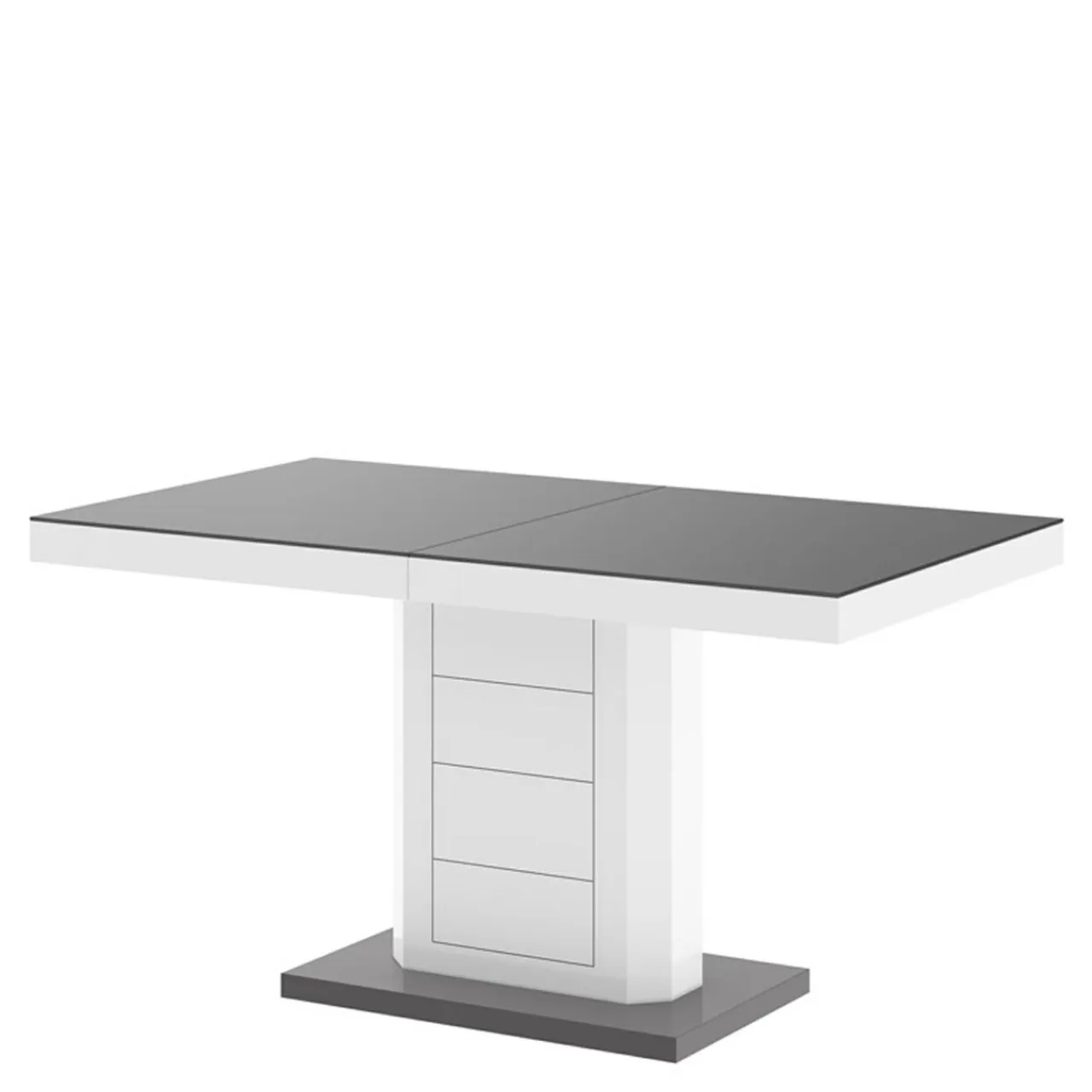 Stół z szarym blatem i podstawą wyróżnia się nowoczesnym designem i doskonale sprawdzi się w jasnych, współczesnych aranżacjach.