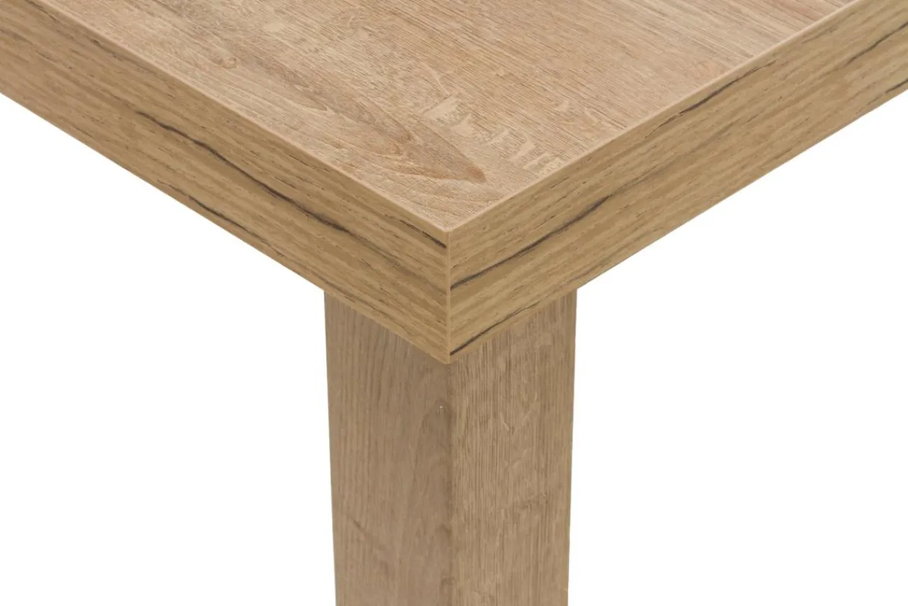 Blat stołu MALMO został wykonany z płyty meblowej i wykończony laminatem.