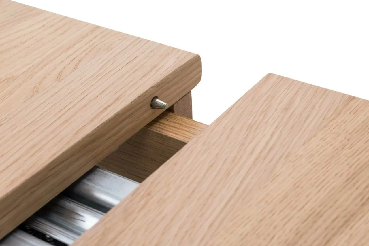 - Stół jest wykonany z płyty wiórowej o grubości 22 mm i wykończony olejowaną okleiną z naturalnego drewna dębowego. Do olejowania drewna użyto naturalnego oleju;