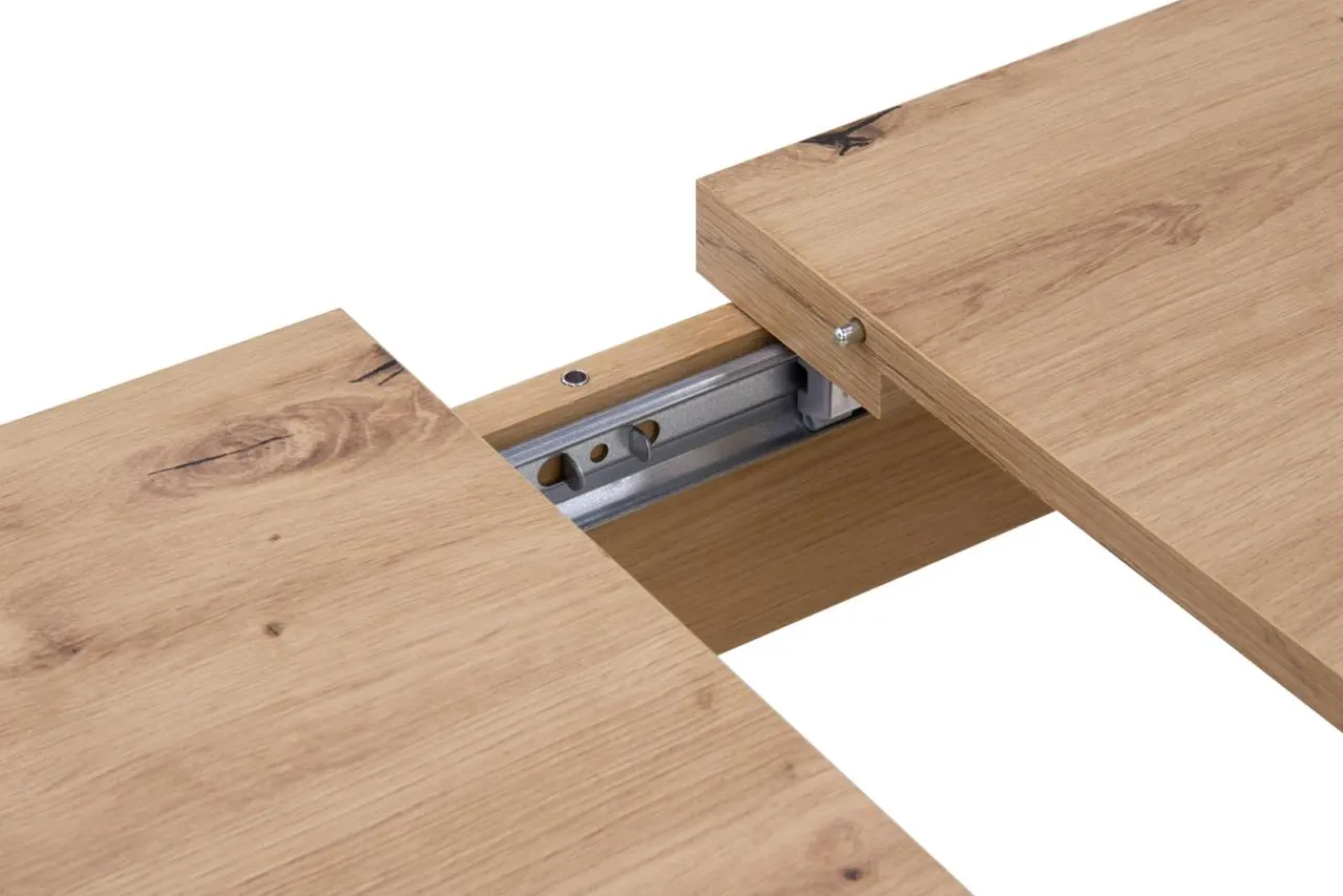 Dzięki prowadnicom blat stołu MORIS można szybko i sprawnie rozłożyć do długości 160 cm.