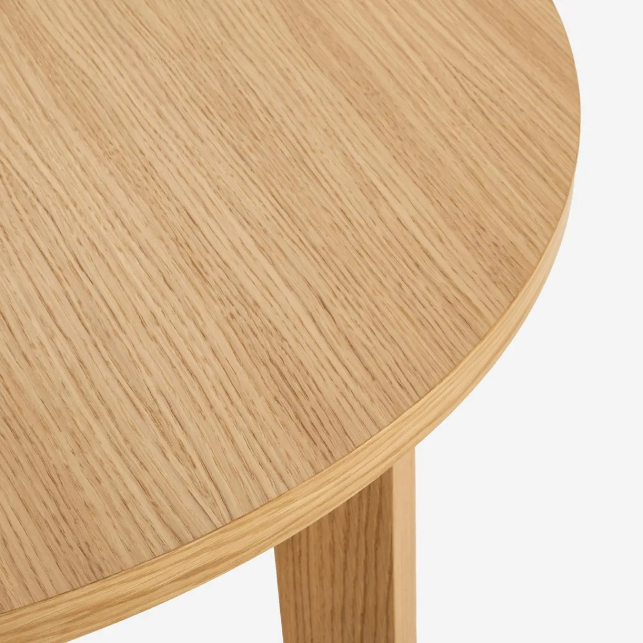 Okrągły stół SORRENTO dzięki łagodnym liniom blatu wpisze się w trend obłych kształtów. Jasne wykończenie z naturalnego forniru dębowego oraz rysunek drewna zapewnią spokojny nastrój podczas posiłków.