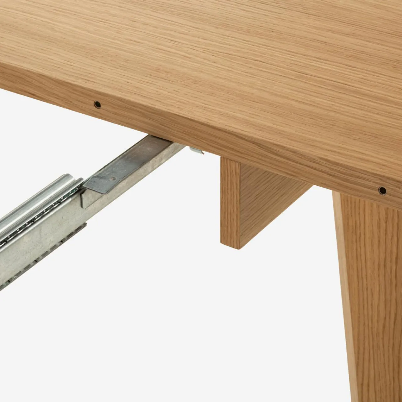 - Stół posiada prowadnicę synchroniczną, dlatego stół rozłożysz samodzielnie – ciągnąc za jeden brzeg blatu, drugi rozsunie się automatycznie.