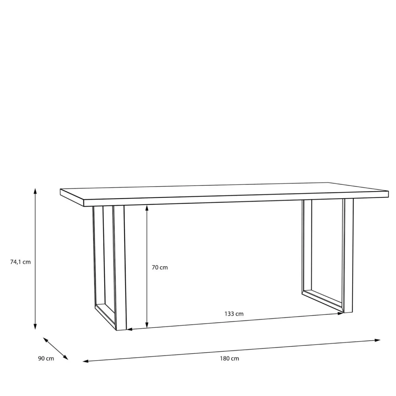 Design stołu JESOLO zainspirowany został surowością i prostotą przemysłowych wnętrz. Połączenie ciemnego koloru drewna i szarego metalu da Ci poczucie industrialnej elegancji w jadalni.