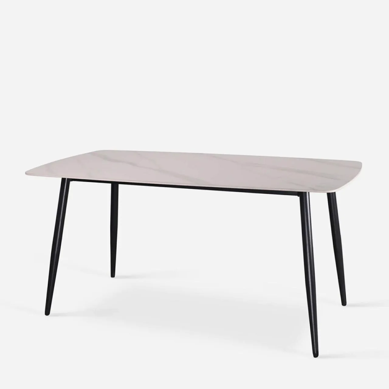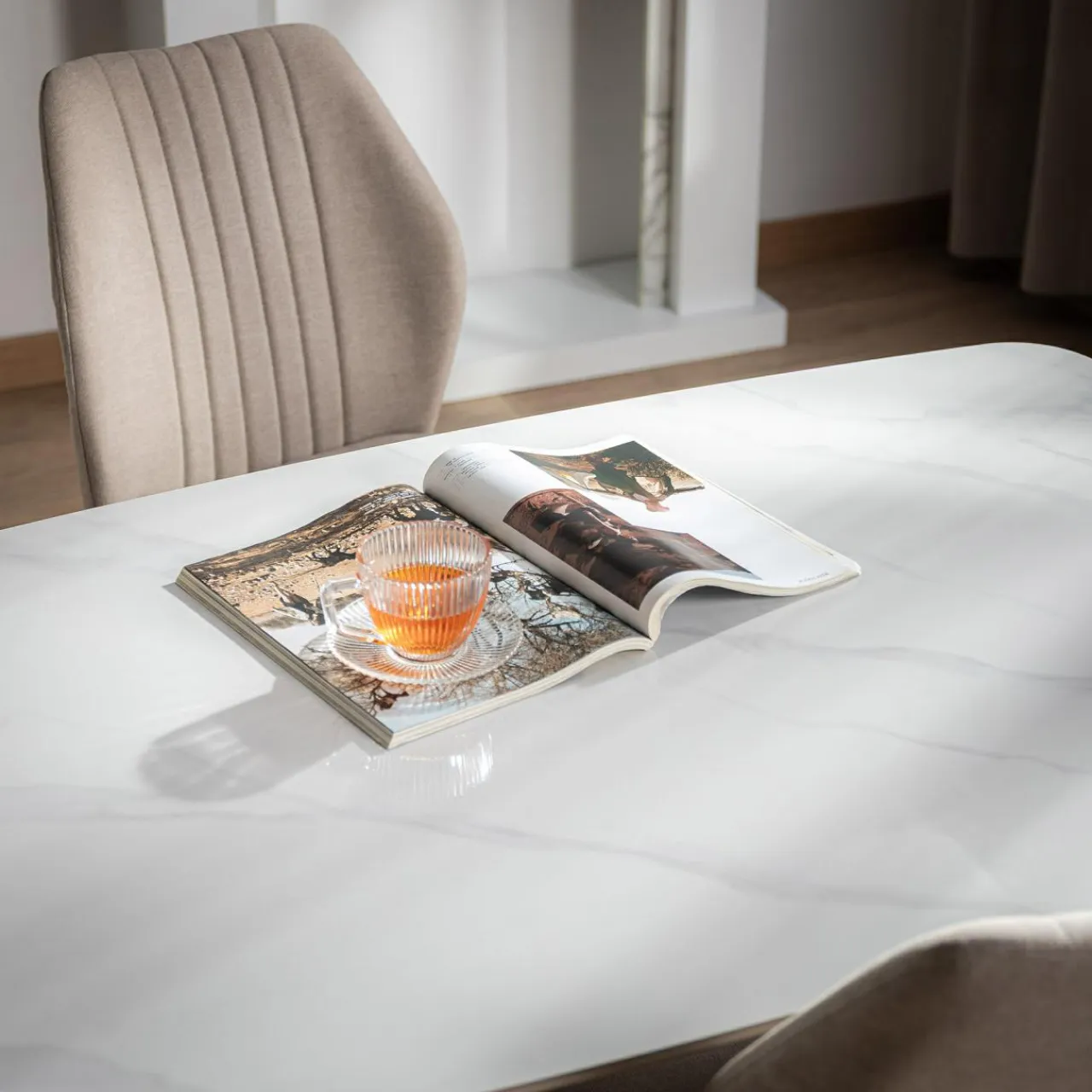 Stół ESKEL posiada blat wykonany z syntetycznego marmuru. Delikatny wzór stanowi sam w sobie dekorację pomieszczenia, bez obrusów i serwet.