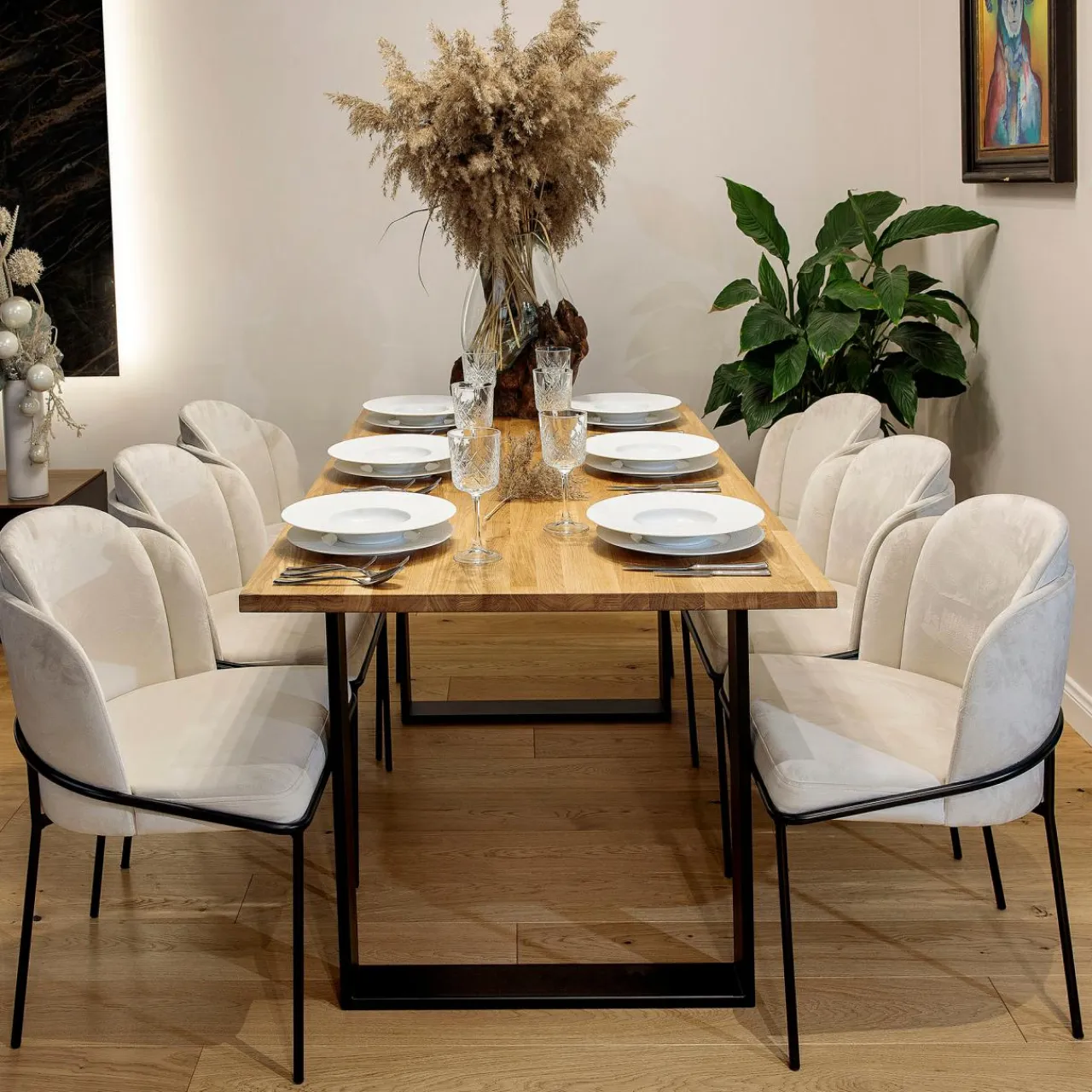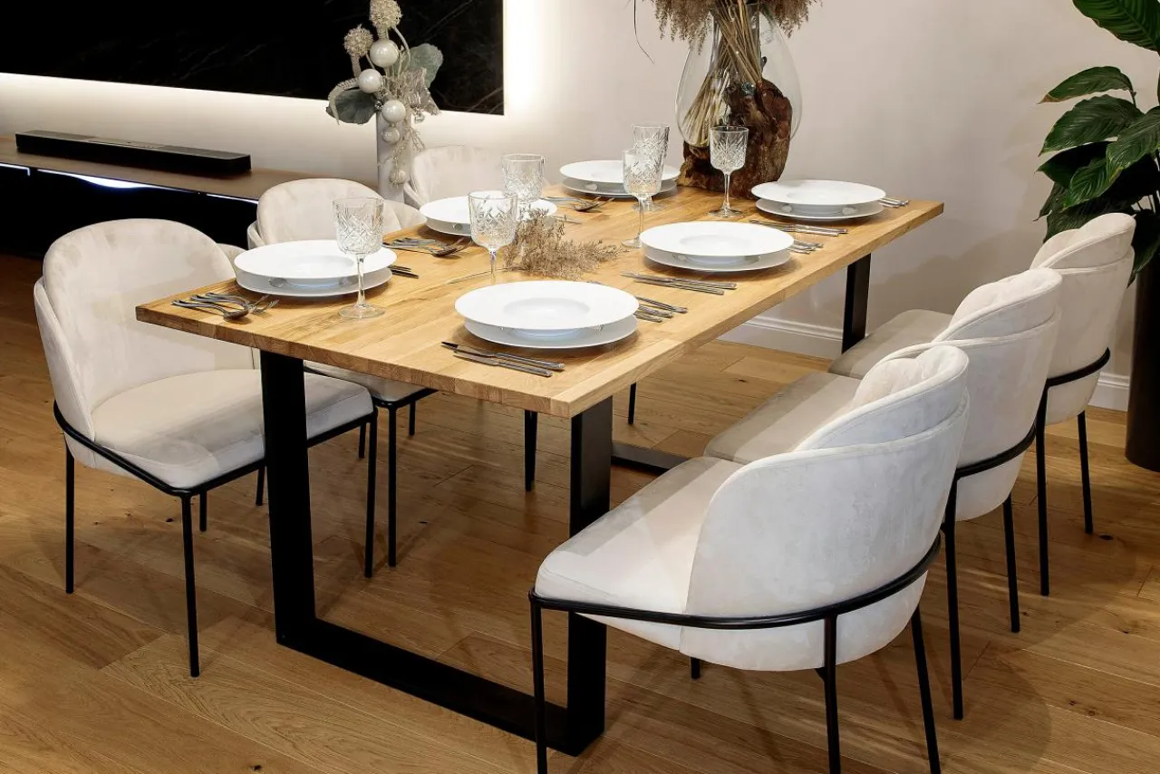 Stwórz nowoczesną aranżację wnętrza jadalni i nadaj jej przytulnego charakteru ze stołem KALENO. Wprowadź naturalne materiały – blat wykonano z drewna dębowego, którego przyjemną porowatość wyczujesz pod palcami.