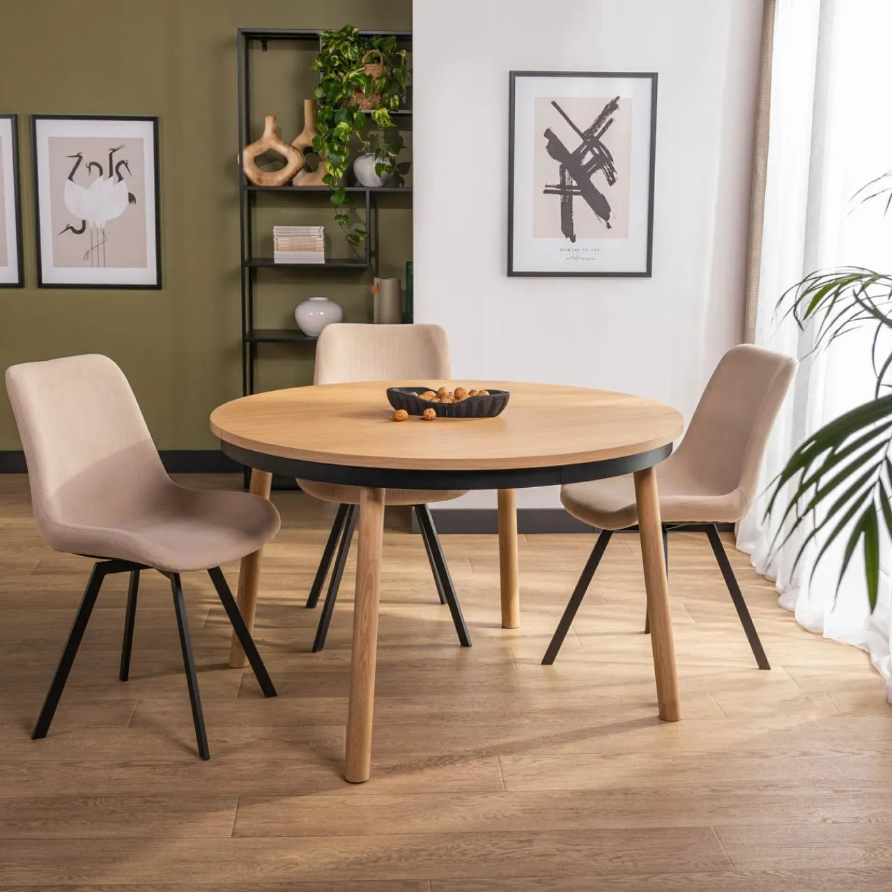 Okrągła forma stołu sprzyja rozmowom przy codziennych posiłkach.