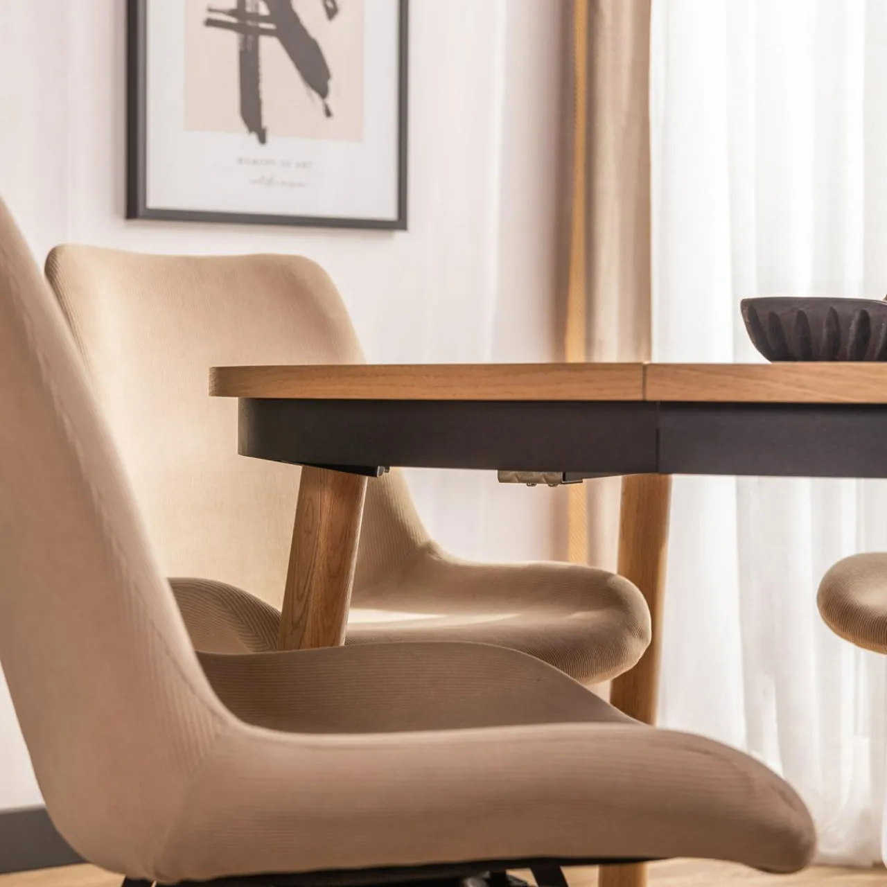 Stół VOLTI rozkłada się z kompaktowego okrągłego blatu do aż 246 cm, oferując miejsce na rodzinne uroczystości.