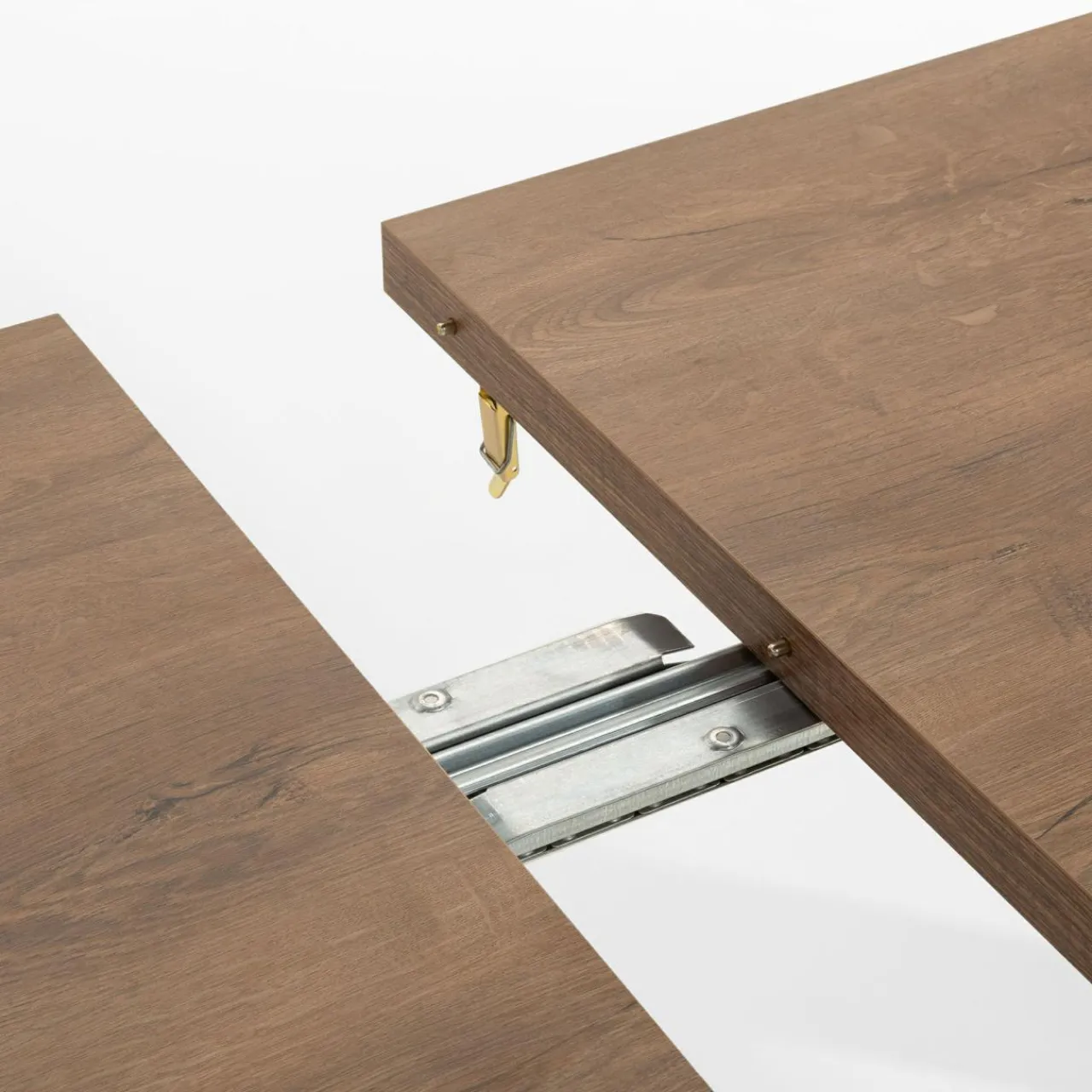 - Stół rozłożysz za pomocą prowadnicy kulkowej umieszczonej na spodzie blatu.