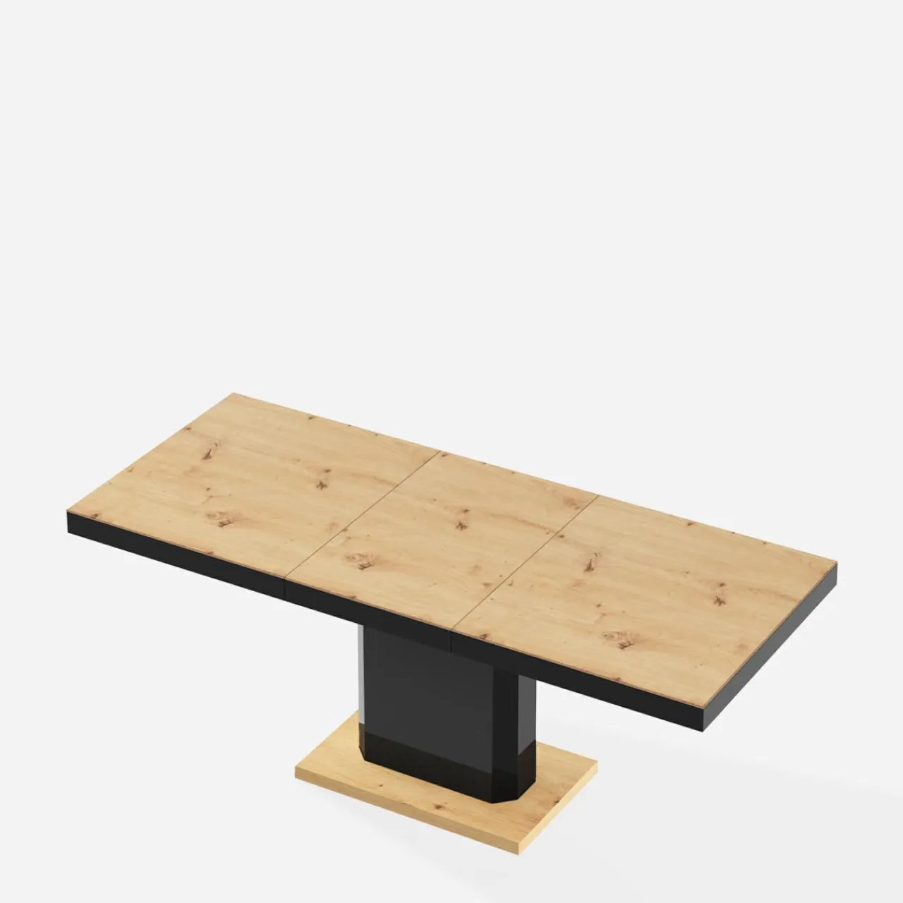 - Długość blatu wynosi 140 cm, po rozsunięciu i dodaniu jednej wkładki (50 cm) zwiększa się do 190 cm.