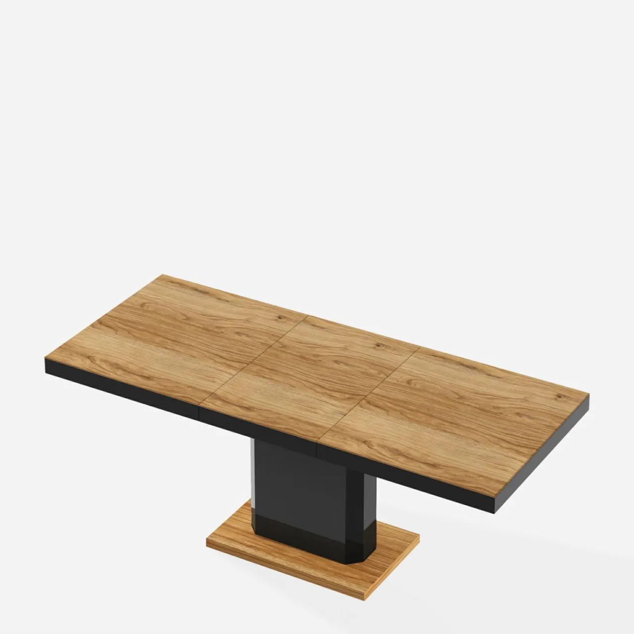 - Długość blatu wynosi 140 cm, po rozsunięciu i dodaniu jednej wkładki (50 cm) zwiększa się do 190 cm.
