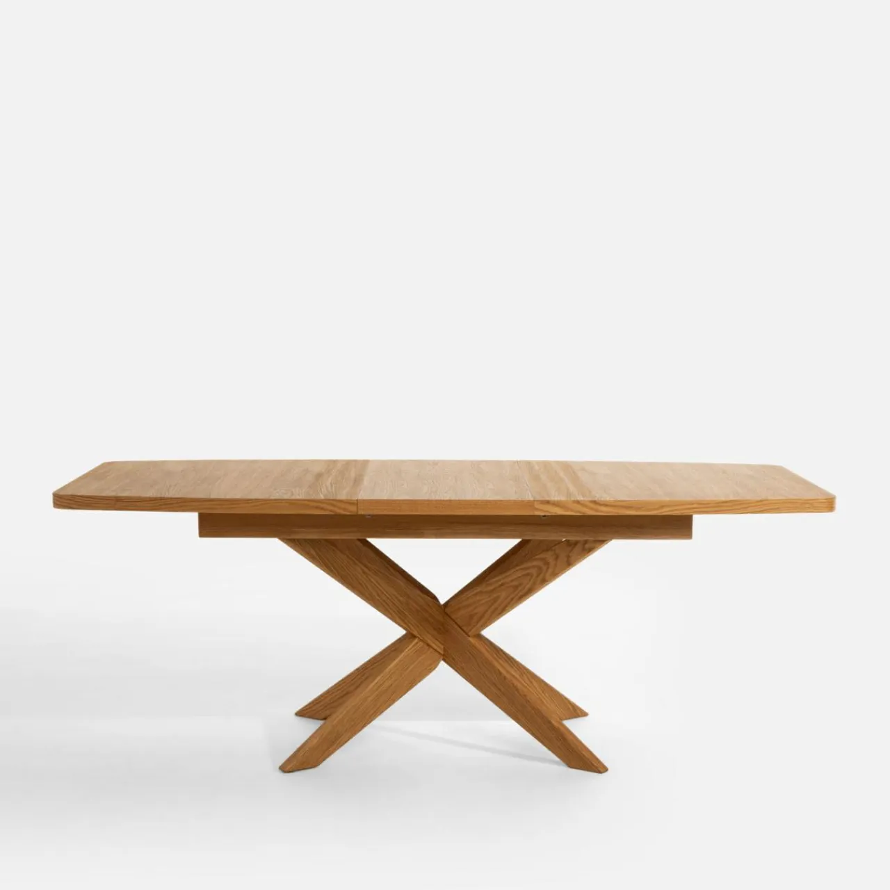 - Synchroniczna prowadnica umożliwia rozkładanie stołu w pojedynkę – pociągnij krawędź blatu, a druga rozsunie się sama.